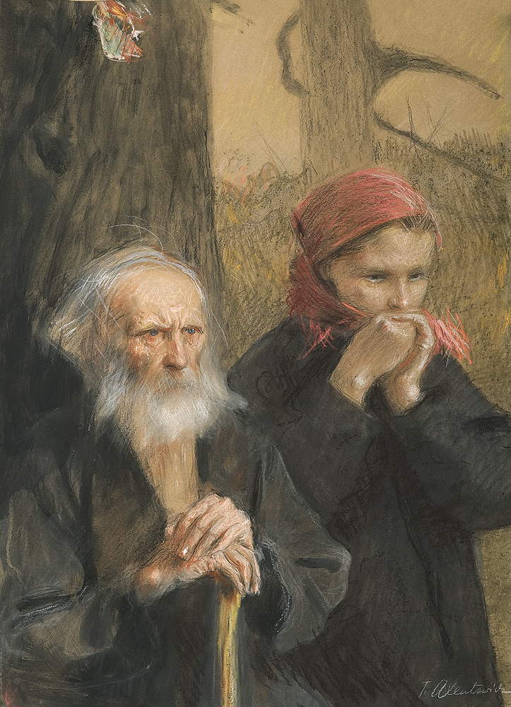 Teodor Axentowicz (Braszów w Siedmiogrodzie 1859 - Kraków 1938) – malarz, pastelista, litograf – był jednym z najbardziej znanych i cenionych malarzy polskich. Kształcił się w Akademii Sztuk Pięknych w Monachium pod kierunkiem Gabriela Hackla, Aleksandra Wagnera, Gyuli Benczúra. Studia uzupełniał w Paryżu, gdzie następnie przebywał przez lat kilkanaście. Brał udział w paryskich Salonach; w 1890 otrzymał członkostwo Société Nationale des Beaux-Arts. W tym czasie wielokrotnie wyjeżdżał również do Londynu. W 1895 powrócił do kraju i zamieszkał na stałe w Krakowie, powołany na profesora tamtejszej Szkoły Sztuk Pięknych (od 1900 Akademii). W uczelni tej nauczał nieprzerwanie do 1934, dwukrotnie pełniąc funkcję rektora (lata 1910-11 oraz 1927-28). Był jednym z członków-założycieli Towarzystwa Artystów Polskich „Sztuka”, członkiem wiedeńskiej „Secesji” i współpracownikiem jej pisma „Ver Sacrum”. Powodzenie przyniosły mu zwłaszcza idealizowane wizerunki wytwornych dam oraz wdzięczne portrety dziecięce. Malował też obrazy o tematyce rodzajowej; był jednym z pierwszych malarzy Huculszczyzny i Hucułów. Tworzył obrazy historyczne i kompozycje symboliczne związane z upływem czasu, przemijaniem, starością. We wczesnym, monachijskim okresie były to obrazy utrzymane w duchu akademickiego realizmu; na późniejszą twórczość artysty wywarło wpływ angielskie malarstwo XVIII w. oraz dzieła malarzy współczesnych - Boldoniego, Whistlera, Sargenta. Jego obrazy cechuje dekoracyjność, elegancja, świeżość subtelnej gamy kolorów i delikatna secesyjna stylizacja. Początkowo malował olejno i akwarelą, a po 1890 przede wszystkim mistrzowsko opanowaną techniką pastelu. Zajmował się ilustratorstwem i litografią, projektował plakaty wystaw „Sztuki”.