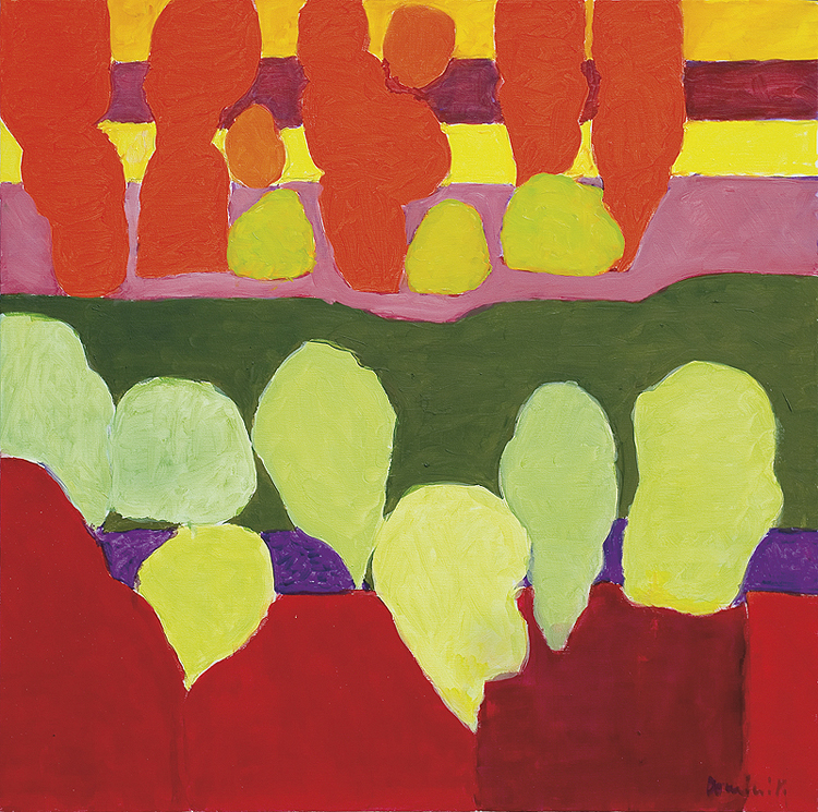 Tadeusz Dominik (Szymanów 14 I 1928 - Warszawa 20 V 2014) studiował na Wydziale Malarstwa ASP w Warszawie pod kierunkiem prof. J.Cybisa (1946-51, dyplom 1953). Od 1951 był pedagogiem na macierzystym Wydziale, początkowo jako asystent Cybisa. Od 1965 prowadził własną pracownię, w 1979 otrzymał tytuł profesora. W 1990 przeszedł na emeryturę. W czasie studiów oddziałały nań - za pośrednictwem osobowości i sztuki Cybisa - idee polskiego koloryzmu, które następnie twórczo i samodzielnie kontynuował. Początkowo tworzył obrazy figuratywne. Debiutował na słynnej wystawie w warszawskim Arsenale w 1955, gdzie zdobył nagrodę. W tym okresie obok malarstwa uprawiał drzeworyt, operujący szerokimi płaszczyznami bieli i czerni (drzeworyty wystawiał m.in. na Biennale w Wenecji w 1956). W drugiej poł. lat 50. zaczął malować obrazy abstrakcyjne, początkowo utrzymane w ekspresyjnej i spontanicznej stylistyce malarstwa informel. W latach 60. wzbogacił swe prace o efekty fakturowe. Niezmienną inspiracją była dla malarza natura, bogactwo i kolorystyka jej form. Pozostał jej wierny do dziś, poddając zmianom sam sposób malowania. Stopniowo rozjaśniał i wygładzał swe kompozycje, wprowadzając efekty dekoracyjne, jak rytmiczne powtórzenia form czy rodzaj malowanych „rastrów“, regularnie znaczących fragmenty kompozycji. Wśród wielu nagród otrzymał m.in. laur „Złotego Grona“ w Zielonej Górze w 1963, Grand Prix Festiwalu Polskiego Malarstwa Współczesnego w Szczecinie w 1968, nagrodę im. George’a Rowney’a w Londynie w 1973 i Nagrodę im. Jana Cybisa w Warszawie w 1973. Równolegle z malarstwem zajmował się gobelinem, ceramiką, również grafiką komputerową.