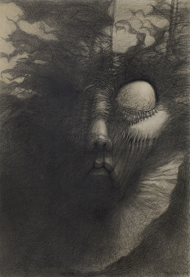 Zdzisław Beksiński (Sanok 24 II 1929 - Warszawa 21 II 2005) studiował w latach 1947-1952 na Wydziale Architektury Politechniki Krakowskiej. Był artystą samoukiem, który osiągnął niekwestionowaną pozycję w polskiej sztuce współczesnej, potwierdzoną obecnością jego prac na prestiżowych wystawach i w kolekcjach muzealnych. Początkowo zajmował się fotografią, którą interesował się od lat studenckich, po 1956 zyskując uznanie jako twórca fotogramów o estetyce opartej o efekty fakturowe. W latach 1958-1962 tworzył abstrakcyjne obrazy-reliefy o bogatej fakturze, głównie metalowe, będące odmianą malarstwa materii. Pod koniec tego okresu powstawały ażurowe formy o kształtach figur i pełnoplastyczne rzeźby w metalu. Kolejnym etapem jego twórczości były lata 1962-1974, kiedy poświęcał się głównie rysunkowi. W latach 60. rysował piórkiem i tuszem figuralne kompozycje odznaczające się karykaturalną deformacją postaci. Od końca lat 60. tworzył rysunki węglem i kredkami, będące monochromatyczną odmianą jego równoległej twórczości malarskiej. Od 1974 zajmował się niemal niepodzielnie malarstwem. Jego charakterystyczny styl bazował na perfekcji technicznej, której towarzyszyła niezwykłość wizji. Malował świat po katastrofie, naznaczony piętnem śmierci i rozpadu. Jego obrazy zaludniają postaci i stwory o ludzkich wprawdzie bądź zwierzęcych kształtach, lecz o cechach fantomów, automatów lub rozpadających się trucheł. Artysta nie nadawał swym obrazom i rysunkom tytułów (poza porządkującymi symbolami), akcentując w ten sposób swój brak zainteresowania dla literackiej strony przedstawień. Sam mówił, że malując całkowicie poddaje się wizji, „fotografuje“ ją. W ostatnich latach włączył do swego warsztatu artystycznego elektroniczne techniki generowania obrazu, które wykorzystywał do tworzenia komputerowych fotomontaży. Sztuka Beksińskiego, wielokrotnie wystawiana i omawiana, budzi skrajne emocje wśród znawców i publiczności.