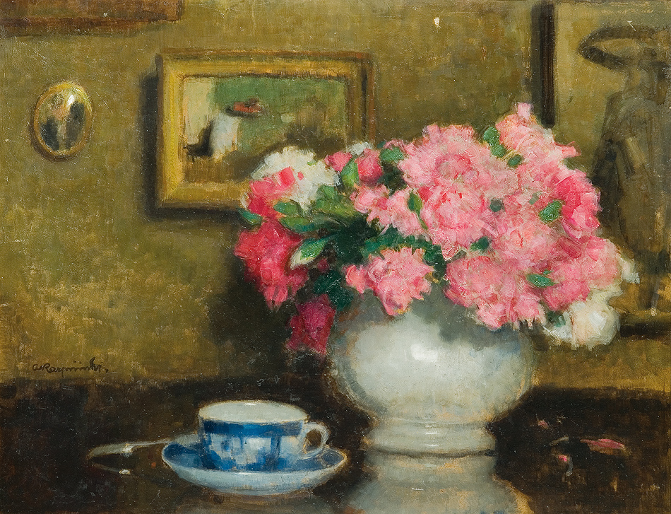 Alfons Karpiński (Rozwadów, dziś dzielnica Stalowej Woli 1875 - Kraków 1961) w latach 1891-1899 studiował w krakowskiej Szkole Sztuk Pięknych pod kierunkiem Floriana Cynka, Izydora Jabłońskiego, Władysława Łuszczkiewicza i Leona Wyczółkowskiego, a następnie kształcił się jeszcze u Antona Ažbégo w Monachium (1903), u Kazimierza Pochwalskiego w Wiedniu, a od 1907 także w Paryżu. Podróżował do Włoch i Londynu. Stale mieszkał w Krakowie; związany z tamtejszym środowiskiem skupionym wokół „Zielonego Balonika” projektował dekoracje do przedstawień kabaretu. Należał do Tow. Artystów Polskich „Sztuka”, grupy „Zero”, był członkiem wiedeńskiego stowarzyszenia „Secesja” i krakowskiego TPSP. Uczestniczył w wielu wystawach w kraju i za granicą. W czasie I wojny światowej służył w armii austriackiej. Na bogatą twórczość artysty składają się wczesne sceny rodzajowe z podkrakowskiej wsi, pejzaże i portrety, wśród nich zwłaszcza portrety kobiece, które przyniosły mu szczególną popularność. Z czasem głównym – obok portretu – tematem jego obrazów stały się martwe natury z kwiatami, dekoracyjne kompozycje o stonowanej gamie barwnej. Artysta zajmował się także grafiką i ilustratorstwem.
