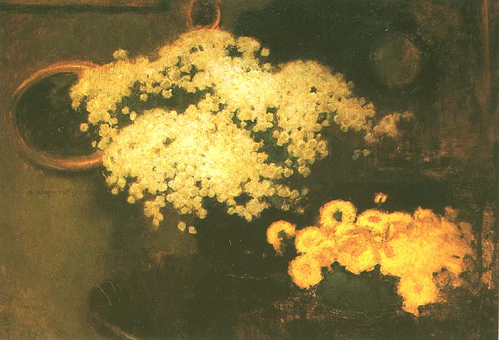 Alfons Karpiński (Rozwadów, dziś dzielnica Stalowej Woli 1875 - Kraków 1961) w latach 1891-1899 studiował w krakowskiej Szkole Sztuk Pięknych pod kierunkiem Floriana Cynka, Izydora Jabłońskiego, Władysława Łuszczkiewicza i Leona Wyczółkowskiego, a następnie kształcił się jeszcze u Antona Ažbégo w Monachium (1903), u Kazimierza Pochwalskiego w Wiedniu, a od 1907 także w Paryżu. Podróżował do Włoch i Londynu. Stale mieszkał w Krakowie; związany z tamtejszym środowiskiem skupionym wokół „Zielonego Balonika” projektował dekoracje do przedstawień kabaretu. Należał do Tow. Artystów Polskich „Sztuka”, grupy „Zero”, był członkiem wiedeńskiego stowarzyszenia „Secesja” i krakowskiego TPSP. Uczestniczył w wielu wystawach w kraju i za granicą. W czasie I wojny światowej służył w armii austriackiej. Na bogatą twórczość artysty składają się wczesne sceny rodzajowe z podkrakowskiej wsi, pejzaże i portrety, wśród nich zwłaszcza portrety kobiece, które przyniosły mu szczególną popularność. Z czasem głównym – obok portretu – tematem jego obrazów stały się martwe natury z kwiatami, dekoracyjne kompozycje o stonowanej gamie barwnej. Artysta zajmował się także grafiką i ilustratorstwem.
