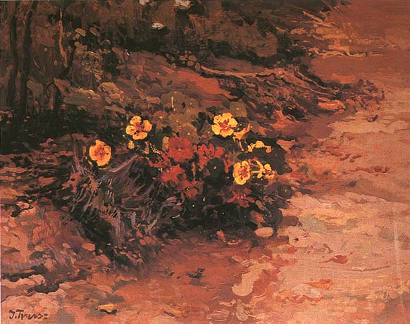 Iwan Trusz (Wysocko 1869 - Lwów 1941) studiował w Krakowskiej Szkole Sztuk Pięknych u I. Jabłońskiego, W. Łuszczkiewicza, J. Unierzyskiego, L. Loefflera, a w latach 1895-97 także u L. Wyczółkowskiego i w pracowni pejzażu J. Stanisławskiego. W 1894 wyjechał do Wiednia i jako wolny słuchacz przez kilka tygodni uczęszczał do tamtejszej ASP. W 1897 równie krótko uczył się w prywatnej szkole A. Ažbego w Monachium. Po studiach wiele podróżował - dwukrotnie, w 1902 i 1908 był we Włoszech, później też w Palestynie i Egipcie, w 1901 i 1902 jeździł na Krym, podróżował po Ukrainie. Stale mieszkał we Lwowie, gdzie w dawnym domu artysty znajduje się obecnie poświęcone mu muzeum. Był przede wszystkim pejzażystą - malował krajobrazy z dalekich podróży oraz nastrojowe pejzaże z Ukrainy. Tworzył także portrety i rodzajowe sceny o tematyce huculskiej. Uprawiał ilustratorstwo, współpracował z ukraińskim teatrem we Lwowie. Zajmował się krytyką artystyczną, pisując artykuły do ukraińskich czasopism „Buducznist“, „Literaturno-Naukowyj Wistnik“, „Artystycznyj Wistnik“ i pracując przy ich redakcji.