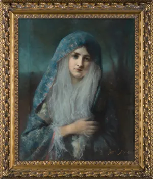 Madonna to niezwykle subtelne i poruszające przedstawienie duchowości, w którym artysta sięga po temat świętości w sposób pełen delikatności i mistycyzmu. Jest to dzieło, w którym zamiast monumentalnej, sakralnej potęgi, spotykamy się z eteryczną i pełną czułości wizją Matki Bożej, z subtelnym pięknem, które porusza duszę i skłania do zadumy. Styka w swoim malarstwie religijnym dążył do nadania postaciom świętym ludzkiej bliskości, a zarazem podkreślenia ich duchowego wymiaru. W prezentowanej Madonnie widzimy kobietę o łagodnym spojrzeniu, otoczoną aurą spokoju i mistycznej zadumy. Twarz Madonny jest pełna cichej kontemplacji, a jej delikatne rysy zdają się niemal rozmywać w świetlistym tle. Eteryczność postaci została osiągnięta poprzez subtelne, miękkie przejścia tonalne, delikatne rozświetlenie twarzy i płynność pociągnięć pędzla. Nie jest to portret majestatycznej królowej niebios, lecz Matki – ciepłej, łagodnej, otoczonej wewnętrznym światłem, które zdaje się emanować z jej wnętrza. Styka, mistrz koloru i światła, w tej kompozycji świadomie ograniczył paletę barw do miękkich, pastelowych tonów. Tło obrazu nie jest bogato zdobione, lecz rozmyte, niemal nierealne, jakby Madonnę otaczała aureola świetlistej mgły. Wrażenie to potęguje uczucie transcendencji. Jan Styka wielokrotnie w swojej twórczości sięgał po tematykę religijną, nadając jej nie tylko malarską, ale i głęboko duchową wartość. Madonna jest jednym z jego najbardziej intymnych i metafizycznych dzieł – pozbawiona nadmiernego patosu, ukazuje cichą świętość, która objawia się nie w potędze i triumfie, lecz w delikatnej kontemplacji i subtelnym świetle.