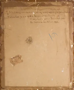 Na odwr. napis farbą: Tę Madonnę uważam za jedną z najlepszych prac moich | Malowałem ją w r. 1906