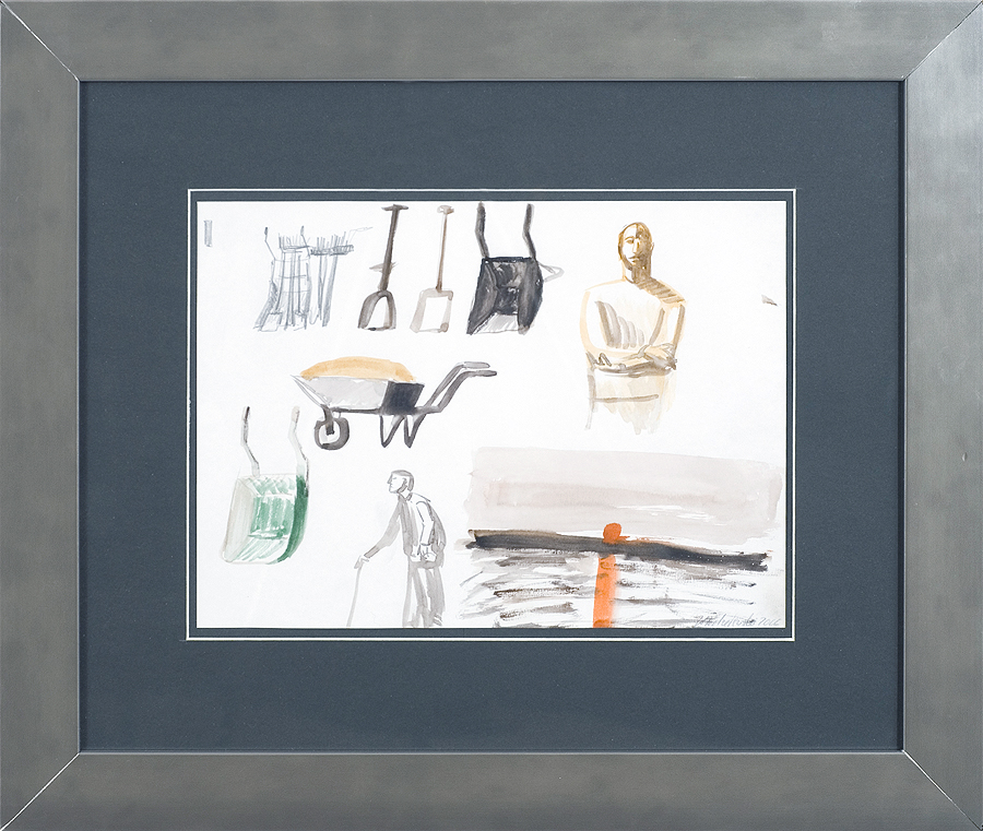 Jarosław Modzelewski (Warszawa 1955, mieszka w Warszawie) studiował malarstwo w ASP w Warszawie w latach 1975-1980, uzyskując dyplom w pracowni Stefana Gierowskiego. Od 1982 pracuje jako pedagog na macierzystym wydziale. W 1982 był współzałożycielem „Gruppy”, najważniejszego ugrupowania nurtu nowej ekspresji lat 80., działającego do 1992. W latach 1991-1996 wspólnie z Markiem Sobczykiem prowadził prywatną Szkołę Sztuki w Warszawie. Od wielu lat współpracuje z Galerią Zderzak w Krakowie. W początkowym okresie twórczości skłaniał się ku abstrakcji, wykorzystywał uproszczone znaki i emblematy oraz sylwetki odbite z szablonu. W 1985 namalował cykl oparty na ilustracjach do podręczników języka rosyjskiego, obrazujący proste czynności, których czasownikowe określenia stanowią tytuły prac. W 1986-1989 powstawały obrazy utrzymane w konwencji realistycznej, jednak zarazem o surrealnej atmosferze uzyskiwanej różnymi metodami, np. przez dublowanie figur, ukazywanie postaci w sytuacji niepewności czy zagrożenia, zabiegi z przestrzenią. W grupie obrazów z 1988 artysta rezygnuje z postaci ludzkiej na rzecz wyjątkowego nasycenia emocją samej przestrzeni pejzaży i wnętrz. Około 1990 wraca do kompozycji akcentujących czynności wykonywane przez postaci, które często umieszczone są w pustej, zaledwie zasugerowanej, acz dominującej przestrzeni. Odrealnienia i monumentalności dodaje tym obrazom płaskie i rozległe kładzenie koloru.