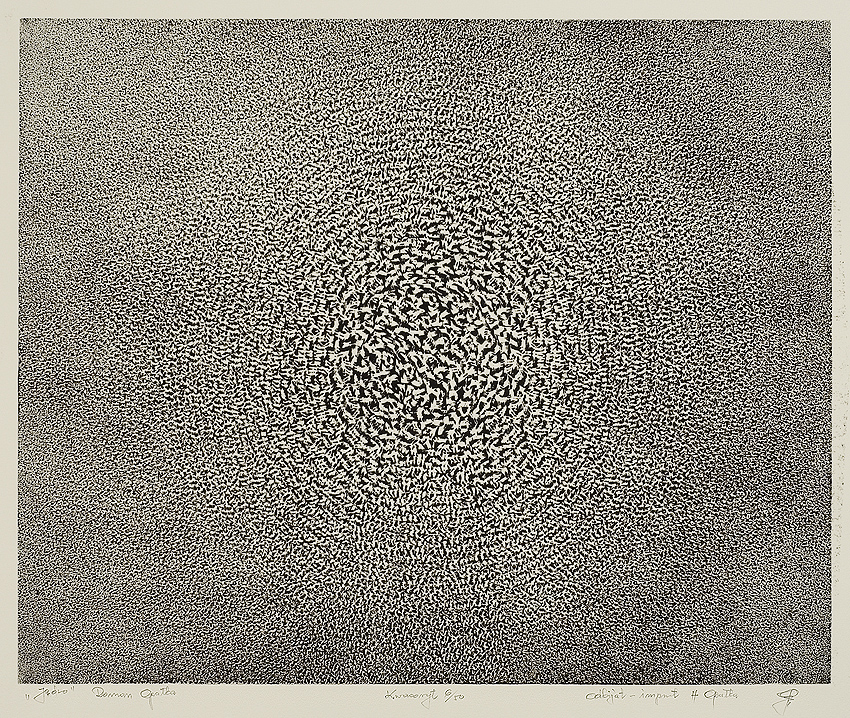 Roman Opałka (Abbéville, Francja 1931 - Rzym 2011) po przyjeździe wraz z rodziną do Polski uczył się w szkole poligraficznej w Nowej Rudzie, po czym podjął studia w Państwowej Wyższej Szkole Sztuk Plastycznych w Łodzi (1949-1950). Kontynuował je w ASP w Warszawie (1950-1956). We wczesnym okresie tworzył cykle malarskie i rysunkowe („Chronomy“, 1961-1963, „Fonematy“, 1963-1964, „Alfabet grecki“, 1965), obiekty przestrzenne („Poduszkowce“, „Integracje“, 1964-1966) oraz cykle graficzne i ilustracje. Od 1965 realizuje program „Obrazów liczonych 1-oo “, który jest projektem na całe życie, polegającym na zapełnianiu powierzchni obrazów kolejnymi liczbami. Już w trakcie realizacji tego programu, w 1965-67 i 1968-70 wykonał dwa cykle graficzne: poświęcony Rewolucji Październikowej (litografie barwne) i „Opisanie świata“ (kwasoryty), za który zdobył liczne nagrody na wystawach międzynarodowych. Od 1970 kontynuuje wyłącznie „Obrazy liczone“ w malarstwie („Detale“), rysunku („Kartki z podróży“) oraz rejestracjach fotograficznych, video i dźwiękowych. Od polowy lat 70. mieszka we Francji. Reprezentował Polskę na Biennale w Wenecji w 1995.