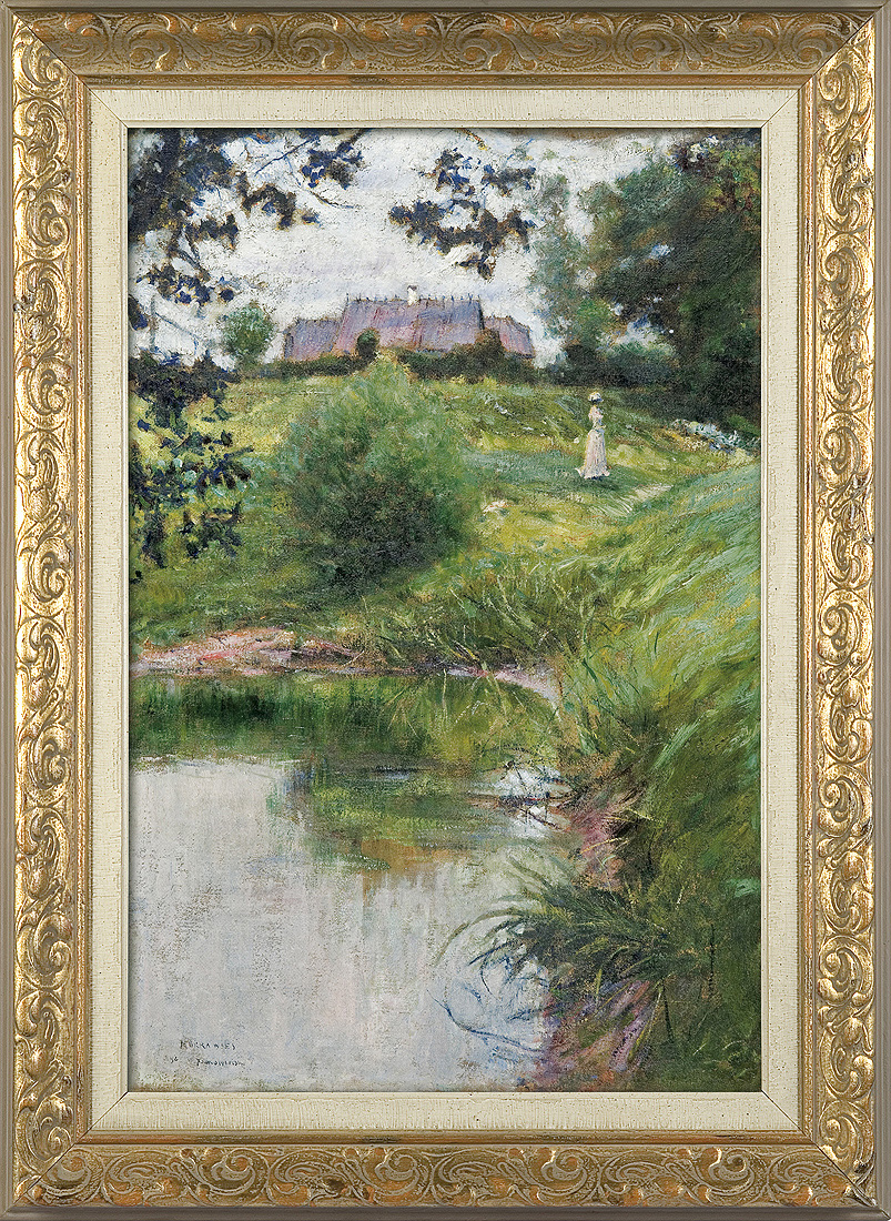 Wówczas powstał także prezentowany tu pejzaż, który - dotąd szerzej nieznany - przez lata pozostawał w zbiorach prywatnych, a teraz szczęśliwie powraca jako, swego rodzaju, odkrycie. Sądzić należy, że był jednym z obrazów pokazanych na, wzmiankowanej wyżej, wystawie w Zachęcie w roku 1892. Jest - być może - tożsamy z wymienionym w recenzji wystawy obrazem Sadzawka.