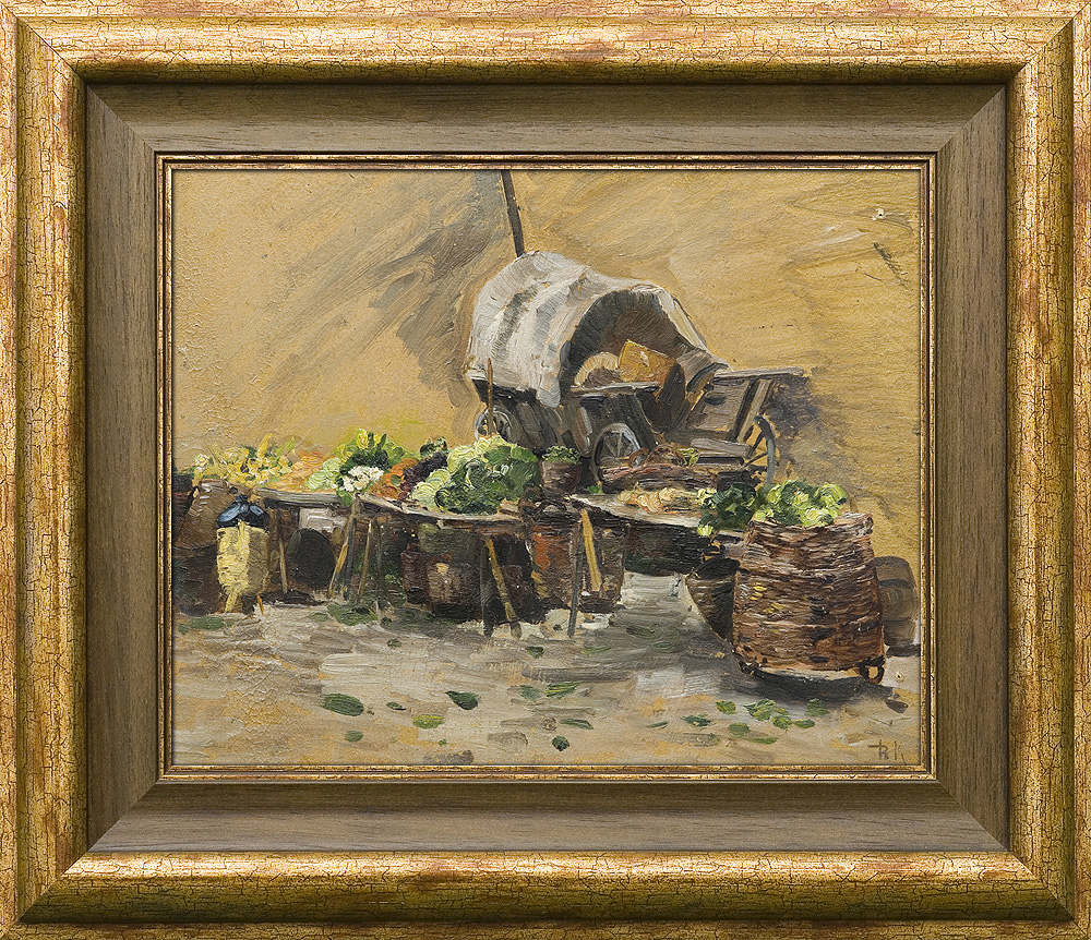 Roman Kochanowski (Kraków 1857 - Freising k. Monachium 1945) - malarz i grafik - był jednym z polskich artystów osiadłych i stałe działających w Monachium. Studia malarskie rozpoczął w Krakowie; początkowo w prywatnej pracowni Maksymiliana Cercha, a w latach 1873- 1875 w Szkole Sztuk Pięknych u Władysława Łuszczkiewicza i pejzażysty Henryka Grabińskiego. Przez następne dwa lata uczył się jeszcze na wydziale pejzażu w Akademii wiedeńskiej. W 1881 przeniósł się do Monachium, gdzie miał własną pracownię, a niebawem założył rodzinę. Często jednak przyjeżdżał do Krakowa, bywał w Poznańskiem, odbył podróż po Galicji i Podolu, rysując krajobrazy i widoki miast, które weszły następnie do albumu wydanego w Wiedniu w roku 1898. Artysta należał do monachijskiego Kunstvereinu, brał udział w wielu wystawach w Niemczech, w Wiedniu, w Londynie; swoje prace przesyłał też na pokazy krajowe. Malował przede wszystkim pejzaże a tylko z rzadka kwiaty i portrety. Stałym i ulubionym motywem jego obrazów był polski, podkrakowski krajobraz z wplecionymi weń postaciami ludzi. Obrazy artysty, malowane często na niewielkich deseczkach, pozbawione warstwy anegdotycznej odznaczają się niecodziennymi walorami malarskimi, harmonią koloru i pełnym liryzmu nastrojem. Zauważane i nagradzane na licznych wystawach były też wysoko cenione na rynku sztuki. W roku 1892, po wystawie w Wiedniu, jeden z obrazów Kochanowskiego zakupił do swoich zbiorów cesarz Franciszek Józef; dwa inne nabyli członkowie cesarskiej rodziny. Wielbicielem jego malarstwa był Karol Józef Luitpold, książę regent Bawarii. Wielka wrażliwość artysty na krajobraz i przyrodę widoczna jest także w jego rysunkach i akwafortach.
