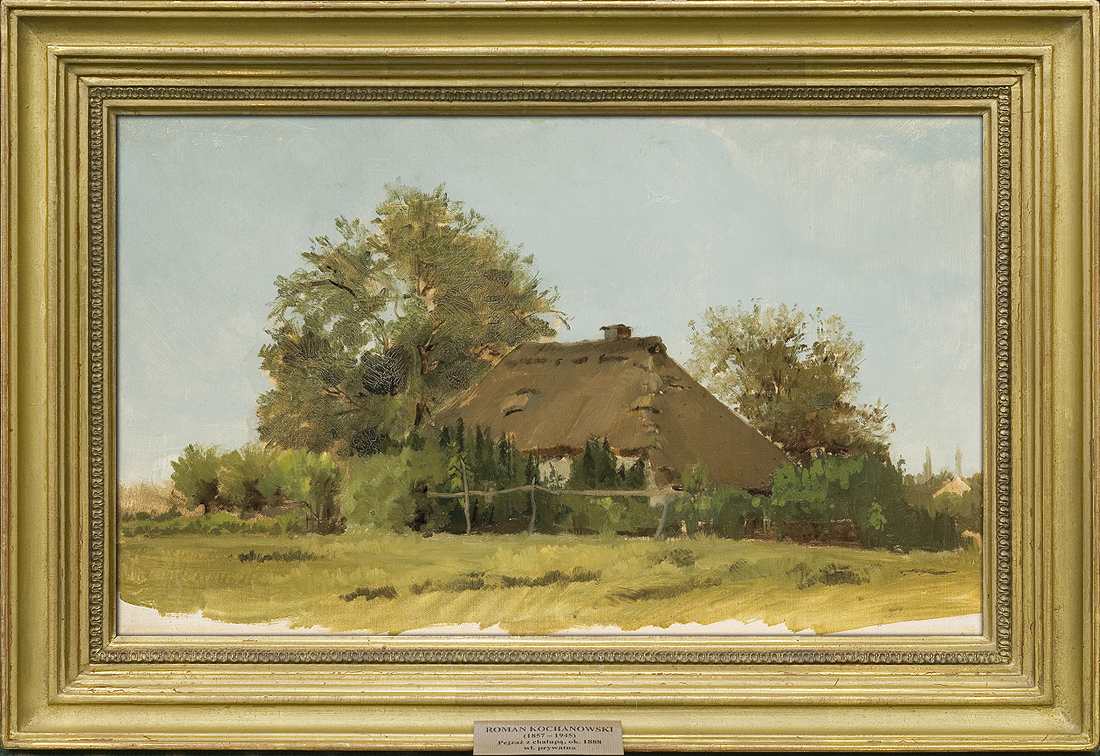 Roman Kochanowski (Kraków 1857 - Freising k. Monachium 1945) - malarz i grafik - był jednym z polskich artystów osiadłych i stałe działających w Monachium. Studia malarskie rozpoczął w Krakowie; początkowo w prywatnej pracowni Maksymiliana Cercha, a w latach 1873- 1875 w Szkole Sztuk Pięknych u Władysława Łuszczkiewicza i pejzażysty Henryka Grabińskiego. Przez następne dwa lata uczył się jeszcze na wydziale pejzażu w Akademii wiedeńskiej. W 1881 przeniósł się do Monachium, gdzie miał własną pracownię, a niebawem założył rodzinę. Często jednak przyjeżdżał do Krakowa, bywał w Poznańskiem, odbył podróż po Galicji i Podolu, rysując krajobrazy i widoki miast, które weszły następnie do albumu wydanego w Wiedniu w roku 1898. Artysta należał do monachijskiego Kunstvereinu, brał udział w wielu wystawach w Niemczech, w Wiedniu, w Londynie; swoje prace przesyłał też na pokazy krajowe. Malował przede wszystkim pejzaże a tylko z rzadka kwiaty i portrety. Stałym i ulubionym motywem jego obrazów był polski, podkrakowski krajobraz z wplecionymi weń postaciami ludzi. Obrazy artysty, malowane często na niewielkich deseczkach, pozbawione warstwy anegdotycznej odznaczają się niecodziennymi walorami malarskimi, harmonią koloru i pełnym liryzmu nastrojem. Zauważane i nagradzane na licznych wystawach były też wysoko cenione na rynku sztuki. W roku 1892, po wystawie w Wiedniu, jeden z obrazów Kochanowskiego zakupił do swoich zbiorów cesarz Franciszek Józef; dwa inne nabyli członkowie cesarskiej rodziny. Wielbicielem jego malarstwa był Karol Józef Luitpold, książę regent Bawarii. Wielka wrażliwość artysty na krajobraz i przyrodę widoczna jest także w jego rysunkach i akwafortach.