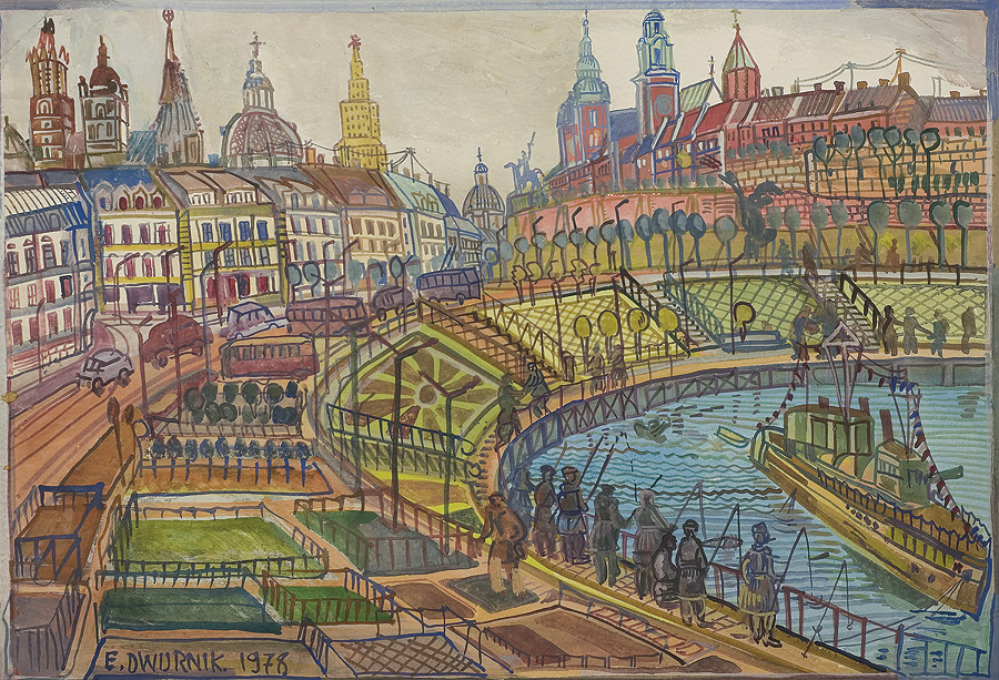 Edward Dwurnik (Radzymin 19 IV 1943 - Warszawa 28 X 2018) studiował malarstwo w ASP w Warszawie (1963-1970), jednak jako swego „mistrza“ wymienia Nikifora. Jego to prace, zobaczone po raz pierwszy w 1965, zainspirowały ówczesnego studenta III roku do narysowania pierwszych prac z cyklu „Podróże autostopem“, które kontynuował w nastepnych latach. W 1972-1978 powstawał cykl „Sportowcy“, w którym portretowane były, dodajmy - kąśliwie, typowe postaci z lat 70. Równolegle od 1975 powstawał cykl „Robotnicy“, który kulminował w okresie „Solidarności“ 1980-1981. Za prace z tego cyklu Dwurnik otrzymał w 1981 Nagrodę Krytyki Artystycznej im. Cypriana Kamila Norwida, natomiast za obrazy z cyklu „Warszawa“ (1981), proroczo zapowiadające stan wojenny - Nagrodę Kulturalną „Solidarności“ podziemnej w 1983. W latach 80. malarstwo Dwurnika przybrało wyraz ekspresyjny i dramatyczny. Powstające w tej dekadzie obrazy miały niejednokrotnie wymowę polityczną, przybierały też kostium historyczny, tak czy inaczej odnoszący się do współczesnych spraw i realiów. Cykl „Droga na Wschód“ (1989-91) upamiętniał ofiary stalinizmu, natomiast cykl „Od Grudnia do Czerwca“ (1990-94) - ofiary stanu wojennego. Zarówno ideowe, jak i czysto malarskie walory tych prac przyniosły artyście ogromne uznanie, zarówno w kraju jak i za granicą. Jego wyrazem była prestiżowa nagroda Fundacji Coutts & Co w Zurychu (1992). W latach 90. powstają cykle będące kontynuacją „Podróży autostopem“: „Niebieskie miasta“ (od 1993) i „Diagonale“ (od 1996), jak również kompozycje nowego typu, jak widoki morskie (cykl „Błękitne“, 1992-93) czy cykl „Wyliczanka“ (1996-99). Artysta wiele wystawia, miał ok. 100 wystaw indywidualnych w Polsce i za granicą, brał też udział w licznych wystawach i festiwalach krajowych i międzynarodowych, m.in.: X Biennale Sztuki Współczesnej, Menton 1974, Documenta 7, Kassel 1982, 5th Biennale, Sydney 1985, XIX Biennale Sztuki, Sao Paulo 1987; Olimpiada Sztuki, Seul 1988. Równolegle z malarstwem uprawiał rysunek, collage, grafikę warsztatową (litografia, techniki metalowe, kserografia, stemple) i użytkową (ilustracja, plakaty do własnych wystaw indywidualnych).
