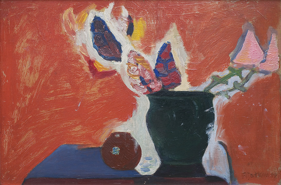 Stanisław Fijałkowski (Zdołbunow na Wołyniu 1922 - Łódź 2020) w latach 1944-1945 przebywał na robotach przymusowych w Królewcu. W latach 1946- 1951 studiował w Państwowej Wyższej Szkole Sztuk Plastycznych w Łodzi pod kierunkiem Władysława Strzemińskiego, Stefana Wegnera i Ludwika Tyrowicza, u którego uzyskał dyplom. W latach 1947-1993 był pedagogiem w macierzystej uczelni, od 1983 profesorem. Pełnił funkcje prorektora i dziekana Wydziału Grafiki. Wykładał też za granicą: w Mons (1978, 1982), Giessen (1989-1990), Marburgu (1990). Jest wiceprezydentem Międzynarodowego Stowarzyszenia Drzeworytników XYLON w Szwajcarii i przewodniczącym Polskiej Sekcji tej organizacji. Należy do zagranicznych Akademii nauk i sztuk w Salzburgu i Brukseli. Jest laureatem Nagrody Krytyki Artystycznej im. Cypriana Norwida 1971, Nagrody im. Jana Cybisa 1990 i wielu innych wyróżnień. Jako pierwszy w Polsce przetłumaczył teksty Wasyla Kandinskiego („Punkt i linia a płaszczyzna” i „O duchowości w sztuce”), oba wydane drukiem, oraz Kazimierza Malewicza „Świat bezprzedmiotowy”. Malarstwo Fijałkowskiego bazuje na skromnym zasobie abstrakcyjnych znaków i ograniczonej gamie barwnej. Kompozycje, w większości sugerujące ujęcia pejzażowe czy szerzej – przestrzenne, budowane są jakby pojedynczymi dotknięciami pędzla. Każdy szczegół nabiera ważności, śledzi się każdy niuans barwy czy faktury. Charakterystyczne kształty i motywy powtarzają się w różnych konfiguracjach w pracach artysty niczym wyrazy, z których układa za każdym razem inną opowieść. Obrazy noszą zazwyczaj poetyckie tytuły, często wpadające w tony groteskowe czy surealistyczne. Cechy te składają się na niezwykłe, intrygujące, autonomiczne zjawisko artystyczne. Malarstwu Fijałkowskiego od początku lat 60. towarzyszy czarno-biała grafika, głównie linoryt i drzeworyt, sporadycznie litografia.