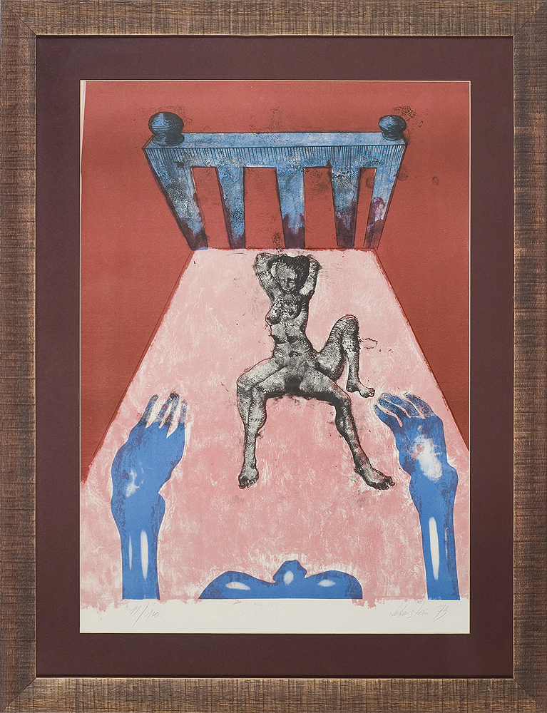 Jan Lebenstein (Brześć Litewski 1930 - Kraków 1999) w latach 1948-1954 studiował malarstwo w ASP w Warszawie pod kierunkiem prof. Eugeniusza Eibischa i Artura Nachta-Samborskiego. W 1955 wziął udział w wystawie w warszawskim Arsenale. Zaprzyjaźniony w czasie studiów z Mironem Białoszewskim, swą pierwszą wystawę indywidualną pokazał w 1956 w Teatrze na Tarczyńskiej. W 1959 zdobył Grand Prix de la Ville de Paris na I Biennale Młodych w Paryżu i w tym roku przeniósł się na stałe do Paryża. Po seriach "figur kreślonych" (na papierze milimetrowym) i "figur hieratycznych" z lat 1955-1958 maluje cykl "figur osiowych" (1958-1962), które wystawia w Paryżu i USA. Równolegle w 1960 zaczyna rysowane "karnety", rodzaj dziennika, który w przyszłości dostarczy motywów wykorzystanych w obrazach. W latach 1964-1965 maluje "Bestiarium", cykl fakturowych, archaizowanych stworów przypominających prehistoryczne wykopaliska. Bezpośrednio po nich wprowadza do swych obrazów postaci ludzkie i fantastyczne, odgrywające sceny ni to mitologiczne, ni to ze snu, często przesycone erotyką. W 1970 projektuje witraże dla Centre du Dialogue w Paryżu. W W 1971 otrzymuje obywatelstwo francuskie 1974 powstają gwasze inspirowane Folwarkiem zwierzęcym George'a Orwella. W latach 1976-1989 tworzy wyłącznie w technice gwaszu i pastelu, podejmując tematykę mitologiczną i zaczerpniętą z Biblii: cykle ilustracji do Księgi Hioba (wyd. 1979) i do Apokalipsy (wyd. 1986) w nowych przekładach Czesława Miłosza. W 1989 powraca do malarstwa olejnego (cykl "Pergamon"). Artysta otrzymał m. in. nagrodę Fundacji im. Alfreda Jurzykowskiego w 1976, Nagrodę Muzeum Archidiecezji Warszawskiej w 1985, Nagrodę im. Jana Cybisa w 1987.