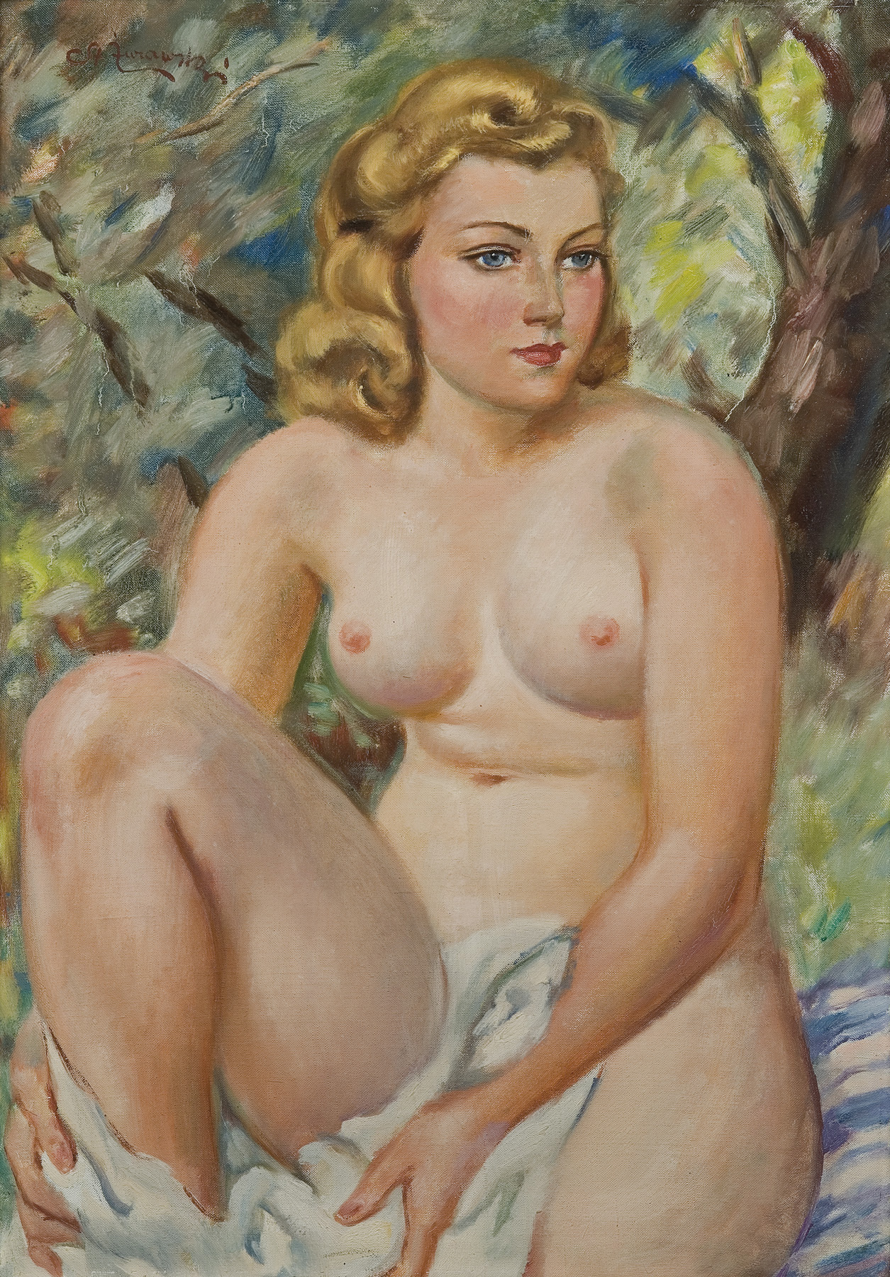 Stanisław Żurawski (Krosno 1889 - Kraków 1976) w latach 1907-1913 studiował w krakowskiej Akademii Sztuk Pięknych pod kierunkiem Józefa Mehoffera, a także Wojciecha Weissa. W czasie studiów kilkakrotnie otrzymywał nagrody i medale za prace szkolne. Był członkiem i założycielem Cechu Artystów Plastyków „Jednoróg”. Malowal portrety, martwe natury i pejzaże, w tym wiele tatrzańskich i nadmorskich. Przede wszystkim jednak malował akty i półakty kobiece – przedstawiane bądź na tle pejzażu, bądź – częściej – na dekoracyjnie ujmowanym tle barwnej pościeli, makat, poduszek. W obrazach tych widać wyraźne inspiracje sztuką Wojciecha Weissa.