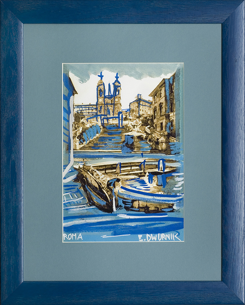 Edward Dwurnik (Radzymin 19 IV 1943 - Warszawa 28 X 2018) studiował malarstwo w ASP w Warszawie (1963-1970), jednak jako swego „mistrza“ wymienia Nikifora. Jego to prace, zobaczone po raz pierwszy w 1965, zainspirowały ówczesnego studenta III roku do narysowania pierwszych prac z cyklu „Podróże autostopem“, które kontynuował w nastepnych latach. W 1972-1978 powstawał cykl „Sportowcy“, w którym portretowane były, dodajmy - kąśliwie, typowe postaci z lat 70. Równolegle od 1975 powstawał cykl „Robotnicy“, który kulminował w okresie „Solidarności“ 1980-1981. Za prace z tego cyklu Dwurnik otrzymał w 1981 Nagrodę Krytyki Artystycznej im. Cypriana Kamila Norwida, natomiast za obrazy z cyklu „Warszawa“ (1981), proroczo zapowiadające stan wojenny - Nagrodę Kulturalną „Solidarności“ podziemnej w 1983. W latach 80. malarstwo Dwurnika przybrało wyraz ekspresyjny i dramatyczny. Powstające w tej dekadzie obrazy miały niejednokrotnie wymowę polityczną, przybierały też kostium historyczny, tak czy inaczej odnoszący się do współczesnych spraw i realiów. Cykl „Droga na Wschód“ (1989-91) upamiętniał ofiary stalinizmu, natomiast cykl „Od Grudnia do Czerwca“ (1990-94) - ofiary stanu wojennego. Zarówno ideowe, jak i czysto malarskie walory tych prac przyniosły artyście ogromne uznanie, zarówno w kraju jak i za granicą. Jego wyrazem była prestiżowa nagroda Fundacji Coutts & Co w Zurychu (1992). W latach 90. powstają cykle będące kontynuacją „Podróży autostopem“: „Niebieskie miasta“ (od 1993) i „Diagonale“ (od 1996), jak również kompozycje nowego typu, jak widoki morskie (cykl „Błękitne“, 1992-93) czy cykl „Wyliczanka“ (1996-99). Artysta wiele wystawia, miał ok. 100 wystaw indywidualnych w Polsce i za granicą, brał też udział w licznych wystawach i festiwalach krajowych i międzynarodowych, m.in.: X Biennale Sztuki Współczesnej, Menton 1974, Documenta 7, Kassel 1982, 5th Biennale, Sydney 1985, XIX Biennale Sztuki, Sao Paulo 1987; Olimpiada Sztuki, Seul 1988. Równolegle z malarstwem uprawiał rysunek, collage, grafikę warsztatową (litografia, techniki metalowe, kserografia, stemple) i użytkową (ilustracja, plakaty do własnych wystaw indywidualnych).