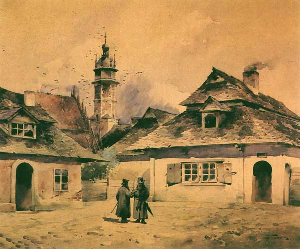 Stanisław Tondos (Kraków 1854-Kraków 1917) znany jest przede wszystkim jako malarz swego rodzinnego miasta Krakowa. Tu po ukończeniu gimnazjum, w latach 1869-1975 kształcił się w Szkole Sztuk Pięknych pod kierunkiem Władysława Łuszczkiewicza i Jana Matejki. Studia kontynuował w Wiedniu, a przez krótki czas także w Akademii monachijskiej u Otto Seitza. Już w początkach swej twórczości zajął się malarstwem wedutowym. Wyjeżdżał do Wenecji, Pragi, Wiednia, Rapperswillu, Norymbergi, Magdeburga malując widoki architektury tych miast. Jego ulubioną, najczęściej stosowaną i mistrzowsko opanowaną techniką była akwarela, ale malował także olejno i pastelami. Najliczniejszą grupę jego dzieł stanowią widoki Krakowa. Obrazy te przedstawiając – często już nieistniejące – domy, uliczki, zaułki są dziś świadectwem minionego czasu, ważnym dokumentem ikonograficznym. Artysta malował też widoki z innych miast Polski - Lwowa, Poznania, Warszawy. W 1886 wspólnie z Juliuszem Kossakiem namalował cykl 24 akwarel, które następnie ukazały się w tece graficznej jako "Klejnoty m. Krakowa". W latach późniejszych powstały jeszcze cykle akwarel "Kościół Mariacki w Krakowie" (1892), "Wawel przeszłości skarbnica, siedziba Piastów i Jagiellonów" (1910), "Kraków Legiony" (1915-1917), malowane tym razem we współpracy z Wojciechem Kossakiem, który był autorem sztafażu – sylwetek ludzi, koni, scenek rodzajowych. Począwszy od 1875 Tondos regularnie wystawiał swe prace w Towarzystwie Przyjaciół Sztuk Pięknych w Krakowie. Brał też udział w wystawach w Warszawie, m.in. w Towarzystwie Zachęty i w Salonie Krywulta. Wiele prac artysty spopularyzowano w formie pocztówek wydawanych nakładem wydawnictwa Salonu malarzy Polskich. W 1900 na wystawach kart pocztowych w Warszawie i w Paryżu Tondos został odznaczony złotymi medalami „za wysoce artystycznie odtworzenie w projektach akwarelowych miast polskich – Lwowa, Krakowa, Warszawy”.