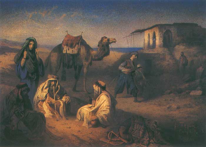 Odpoczynek Beduinów koło opuszczonej ...