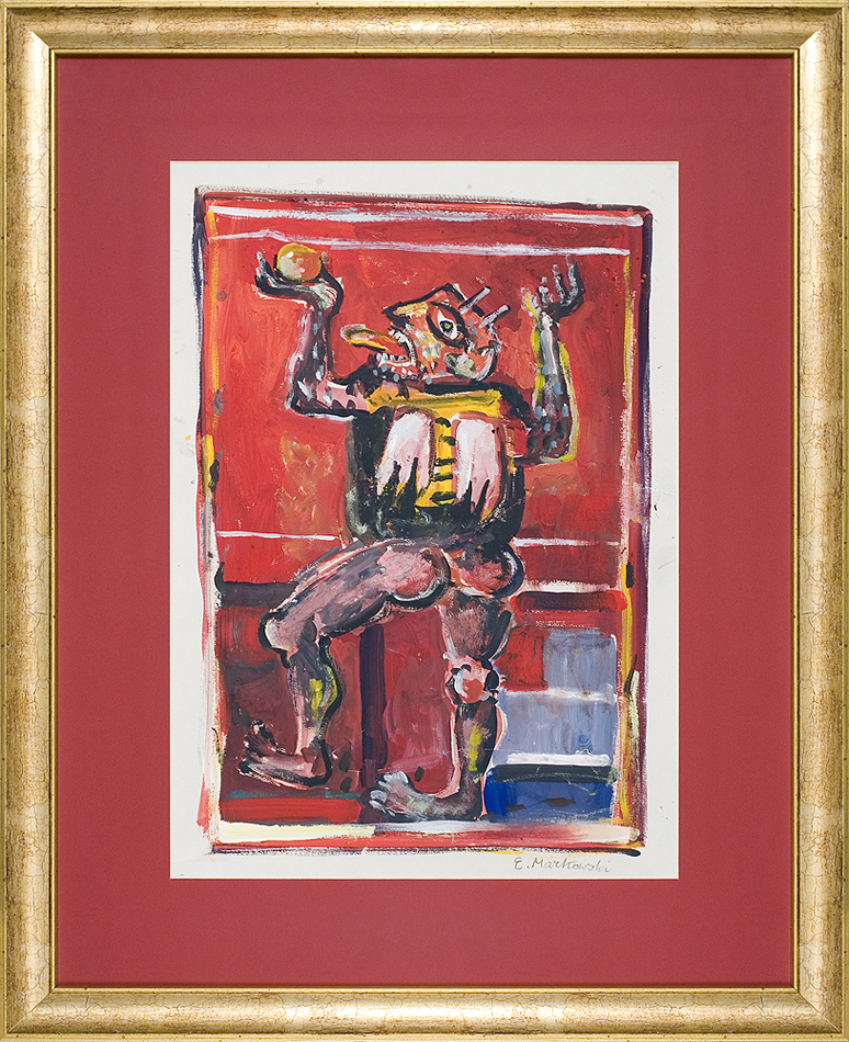 Eugeniusz Markowski (Warszawa 8 XI 1912 - Warszawa 24 II 2007) studiował w warszawskiej ASP, dyplom u prof. Tadeusza Pruszkowskiego uzyskał w 1939. Brał udział w kampanii wrześniowej i obronie Warszawy. W latach 1940-1950 przebywał we Włoszech, gdzie związał się z grupą Libera Associazione Arti Figurative i z Art Club w Rzymie. Zajmował się też projektowaniem scenografii dla rzymskiego Teatro delle Arti. Był dziennikarzem i dyplomatą we Włoszech i Kanadzie (1945-1955). Po powrocie do kraju był dyrektorem Biura Współpracy Kulturalnej z Zagranicą Ministerstwa Kultury i Sztuki (1960-1969), następnie wykładowcą i profesorem ASP w Warszawie (1969-1984). Współ-pracował jako scenograf z Operą Gdańską i teatrami warszawskimi. W 1963 reprezentował Polskę na Biennale w Sao Paulo, miał kilka wystaw indywidualnych. Jego ekspresyjny styl malowania, bezpośredniość i pewna rubaszność figuratywnych przedstawień walk i zmagań spowodowały, że w latach 80. uznano go za prekursora „nowodzikich".