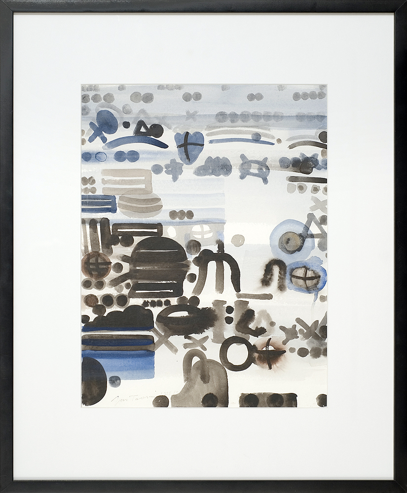 Jan Tarasin (Kalisz 11 IX 1926 - Warszawa 8 VIII 2009) studiował malarstwo w ASP w Krakowie pod kierunkiem prof. Zbigniewa Pronaszki (1946-1951). Jeszcze jako student zadebiutował na I Wystawie Sztuki Nowoczesnej w Krakowie w 1948/49. W połowie lat 50. stworzył cykle litografii: „Nowa Huta i jej mieszkańcy“, 1954, „Dom“, 1955). W pierwszym przeciwstawił się oficjalnemu optymizmowi, w drugim, operując symboliką martwej natury, zawarł treści egzystencjalne i odnoszące do niedawnego dramatu wojny. Po 1956 zaczął malować obrazy niefiguratywne. Układy wyodrębnionych elementów (określanych jako „przedmioty“) umieszczane były przez artystę na płaszczyźnie (cykl „Wnętrze“, 1957) ), lub w aluzyjnej przestrzeni (cykle „Uczta“, 1957, „Brzeg“, 1962-1964, „Przedmioty policzone“, od 1968, „Antykwariat“, 1968). Zasada ta utrzymuje się w jego malarstwie w następnych latach, różnice między okresami twórczości dotyczą sposobu opracowania „przedmiotów“ i ich usytuowania w przestrzeni obrazu lub wobec tła. Od lat 70. „przedmioty“ zmieniają się w graficzne, zwykle czarne znaki na jasnych tłach (cykl „Kolekcja“, od 1971). Tła z kolei bywają iluzyjnie przestrzenne, zróżnicowane walorowo, miękkie. W latach 90. artysta wrócił do kolorystycznego, bardziej malarskiego rozwiązywania zarówno znaków, jak i teł, często ciemnych lub przenikających się z „przedmiotami“ (cykl „Wylęgarnia przedmiotów“, 1992). Tarasin od 1962 jest członkiem „Grupy Krakowskiej“. W 1963-67 uczył na Wydziale Architektury Wnętrz krakowskiej ASP. W 1967 przeniósł się do Warszawy, w 1974 podjął pracę pedagogiczną na Wydziale Malarstwa ASP w Warszawie. W 1987-90 był rektorem tej uczelni. W 1976 otrzymał Nagrodę Krytyki Artystycznej im. Cypriana Kamila Norwida, w 1984 Nagrodę im. Jana Cybisa.; Nagroda na MB Sztuki w San Marino 1965. Równolegle z malarstwem zajmował się rysunkiem i grafiką - do lat 60. litografią, od 1974 serigrafią. W 1974-1981 wydał 8 autorskich „Zeszytów“ z serigrafiami i własnymi tekstami. W 1995 w Galerii Zachęta odbyła się wystawa artysty, której towarzyszył monograficzny katalog.