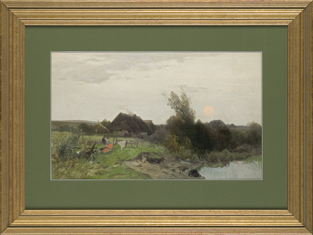 Roman Kochanowski (Kraków 1857 - Freising k. Monachium 1945) - malarz i grafik - był jednym z polskich artystów osiadłych i stałe działających w Monachium. Studia malarskie rozpoczął w Krakowie; początkowo w prywatnej pracowni Maksymiliana Cercha, a w latach 1873- 1875 w Szkole Sztuk Pięknych u Władysława Łuszczkiewicza i pejzażysty Henryka Grabińskiego. Przez następne dwa lata uczył się jeszcze na wydziale pejzażu w Akademii wiedeńskiej. W 1881 przeniósł się do Monachium, gdzie miał własną pracownię, a niebawem założył rodzinę. Często jednak przyjeżdżał do Krakowa, bywał w Poznańskiem, odbył podróż po Galicji i Podolu, rysując krajobrazy i widoki miast, które weszły następnie do albumu wydanego w Wiedniu w roku 1898. Artysta należał do monachijskiego Kunstvereinu, brał udział w wielu wystawach w Niemczech, w Wiedniu, w Londynie; swoje prace przesyłał też na pokazy krajowe. Malował przede wszystkim pejzaże a tylko z rzadka kwiaty i portrety. Stałym i ulubionym motywem jego obrazów był polski, podkrakowski krajobraz z wplecionymi weń postaciami ludzi. Obrazy artysty, malowane często na niewielkich deseczkach, pozbawione warstwy anegdotycznej odznaczają się niecodziennymi walorami malarskimi, harmonią koloru i pełnym liryzmu nastrojem. Zauważane i nagradzane na licznych wystawach były też wysoko cenione na rynku sztuki. W roku 1892, po wystawie w Wiedniu, jeden z obrazów Kochanowskiego zakupił do swoich zbiorów cesarz Franciszek Józef; dwa inne nabyli członkowie cesarskiej rodziny. Wielbicielem jego malarstwa był Karol Józef Luitpold, książę regent Bawarii. Wielka wrażliwość artysty na krajobraz i przyrodę widoczna jest także w jego rysunkach i akwafortach.