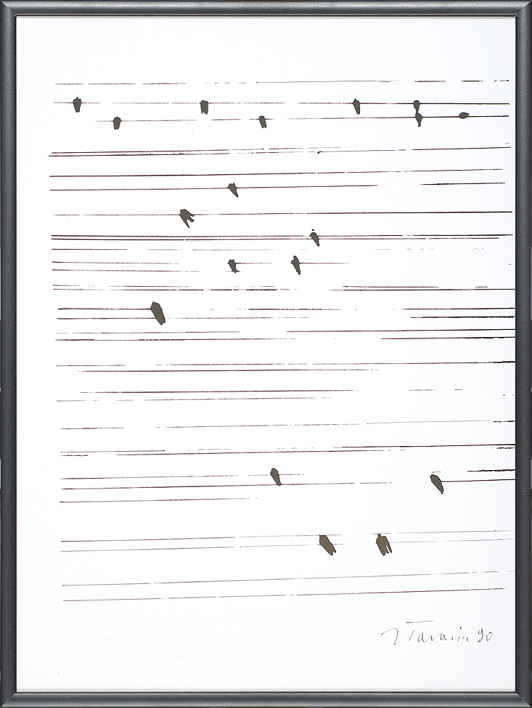 Jan Tarasin (Kalisz 11 IX 1926 - Warszawa 8 VIII 2009) studiował malarstwo w ASP w Krakowie pod kierunkiem prof. Zbigniewa Pronaszki (1946-1951). Jeszcze jako student zadebiutował na I Wystawie Sztuki Nowoczesnej w Krakowie w 1948/49. W połowie lat 50. stworzył cykle litografii: „Nowa Huta i jej mieszkańcy“, 1954, „Dom“, 1955). W pierwszym przeciwstawił się oficjalnemu optymizmowi, w drugim, operując symboliką martwej natury, zawarł treści egzystencjalne i odnoszące do niedawnego dramatu wojny. Po 1956 zaczął malować obrazy niefiguratywne. Układy wyodrębnionych elementów (określanych jako „przedmioty“) umieszczane były przez artystę na płaszczyźnie (cykl „Wnętrze“, 1957) ), lub w aluzyjnej przestrzeni (cykle „Uczta“, 1957, „Brzeg“, 1962-1964, „Przedmioty policzone“, od 1968, „Antykwariat“, 1968). Zasada ta utrzymuje się w jego malarstwie w następnych latach, różnice między okresami twórczości dotyczą sposobu opracowania „przedmiotów“ i ich usytuowania w przestrzeni obrazu lub wobec tła. Od lat 70. „przedmioty“ zmieniają się w graficzne, zwykle czarne znaki na jasnych tłach (cykl „Kolekcja“, od 1971). Tła z kolei bywają iluzyjnie przestrzenne, zróżnicowane walorowo, miękkie. W latach 90. artysta wrócił do kolorystycznego, bardziej malarskiego rozwiązywania zarówno znaków, jak i teł, często ciemnych lub przenikających się z „przedmiotami“ (cykl „Wylęgarnia przedmiotów“, 1992). Tarasin od 1962 jest członkiem „Grupy Krakowskiej“. W 1963-67 uczył na Wydziale Architektury Wnętrz krakowskiej ASP. W 1967 przeniósł się do Warszawy, w 1974 podjął pracę pedagogiczną na Wydziale Malarstwa ASP w Warszawie. W 1987-90 był rektorem tej uczelni. W 1976 otrzymał Nagrodę Krytyki Artystycznej im. Cypriana Kamila Norwida, w 1984 Nagrodę im. Jana Cybisa.; Nagroda na MB Sztuki w San Marino 1965. Równolegle z malarstwem zajmował się rysunkiem i grafiką - do lat 60. litografią, od 1974 serigrafią. W 1974-1981 wydał 8 autorskich „Zeszytów“ z serigrafiami i własnymi tekstami. W 1995 w Galerii Zachęta odbyła się wystawa artysty, której towarzyszył monograficzny katalog.