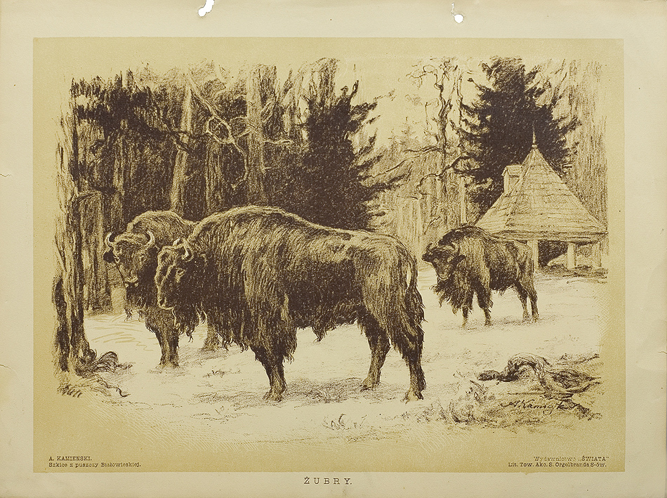 Żubry z cyklu Szkice z Puszczy Białowieskiej
