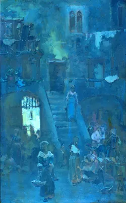 Wilhelm Kotarbiński (Nieborów 1849 – Kijów 1921) kształcił się w warszawskiej Klasie Rysunkowej pod kierunkiem Rafała Hadziewicza (lata1867-1871), a od roku 1872 także w Akademii Św. Łukasza w Rzymie. Po ukończeniu studiów otworzył w Rzymie własną pracownię, w której udzielał także lekcji rysunków; jego uczennicą była m.in. Maria Baszkircew. Do kraju wrócił w 1888 i odtąd przebywał głównie we własnym majątku Kalsk (lub Kulsk) na Białorusi. Stamtąd wielokrotnie wyjeżdżał do Kijowa, gdzie miał pracownię w hotelu Praga, uczestniczył w wystawach kijowskiego Tow. Artystycznego, a w 1893 był współzałożycielem Tow. Malarzy Kijowskich. Wraz z P. Swiedomskim, M. Niestierowem i M. Wrublem pracował przy dekoracji freskami kijowskiego soboru Św. Włodzimierza (ukończone 1894-1895). Był także autorem dekoracyjnych plafonów i malowideł ściennych m.in. w domu M. Tereszczenki i w pałacu B. Chanenki w Kijowie oraz w salonach pałaców w Petersburgu i Moskwie. Malował przede wszystkim kompozycje o tematach biblijnych bądź antycznych – z życia starożytnego Wschodu, Grecji i Rzymu; tworzył też pejzaże oraz sceny fantastyczne i symboliczne. Jego obrazy wyróżniają się wyrafinowaną kolorystyką, swobodną techniką, swoistą stylizacją form i specyficznym, często tajemniczym nastrojem. Największa popularność artysty przypada na dziewięćdziesiąte lata XIX wieku, kiedy – ze względu na „antyczną” tematykę swych obrazów – bywał porównywany z Siemiradzkim. Dzieła Kotarbińskiego rzadko pojawiają się na rynku sztuki; większość jego prac zaginęła bądź uległa zniszczeniu w czasie pierwszej wojny światowej i rewolucji bolszewickiej.
