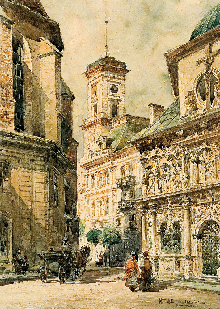 Władysław Chmieliński (Warszawa 1911 - Warszawa 1979) był malarzem związanym z Warszawą, gdzie stale mieszkał i pracował. W latach 1926-1931 studiował w warszawskiej Miejskiej Szkole Sztuk Zdobniczych i Malarstwa (dawna Klasa Rysunkowa). Wiodącym tematem jego obrazów były widoki miejskie, malowane olejno i akwarelą. W latach 1935-1938 stworzył cykl akwarel przedstawiających obiekty polskiej architektury; wśród nich, widoki Sandomierza, Krakowa, Kazimierza nad Wisłą, a także wnętrza zabytkowych kościołów czy pałaców, m.in. Zamku Królewskiego w Warszawie i Pałacu w Wilanowie. Malował także pejzaże i wiejskie sceny rodzajowe – kuligi, sanny, zaprzęgi, wesela, konie na tle krajobrazu. W latach 1967-1969 wyjeżdżał na dłuższe pobyty do Danii. W latach 1936-1939 artysta używał także pseudonimu „Władysław Stachowicz”.