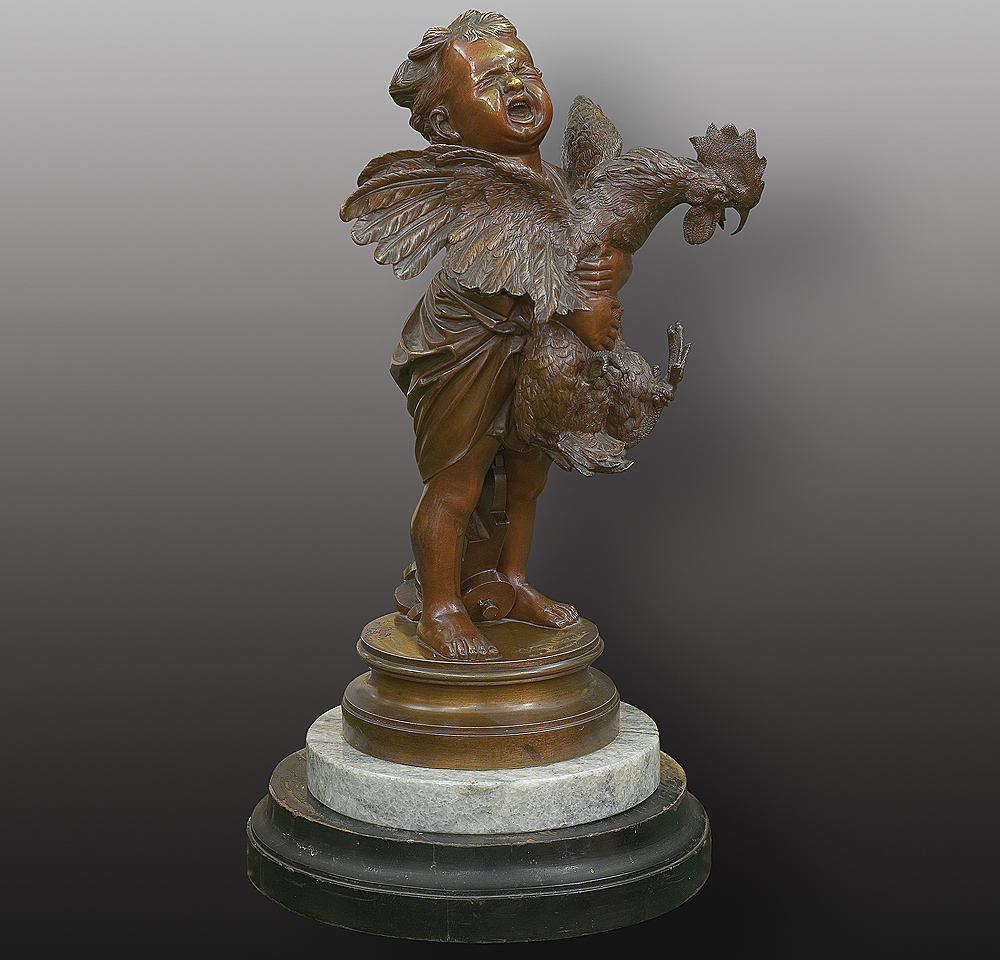 brąz patynowany, podstawa: marmur i drewno