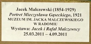 Jacek Malczewski (Radom 1854 - Kraków 1929) - wybitny przedstawiciel malarstwa polskiego modernizmu, studia artystyczne rozpoczął w krakowskiej Szkole Sztuk Pięknych, gdzie w latach 1872-1875 uczył się pod kierunkiem Feliksa Szynalewskiego, Władysława Łuszczkiewicza i Jana Matejki, do którego pracowni uczęszczał ponownie w latach 1877-1879. Następnie kształcił się w Paryskiej École des Beaux Arts u E. Lehmanna (1876-1877).