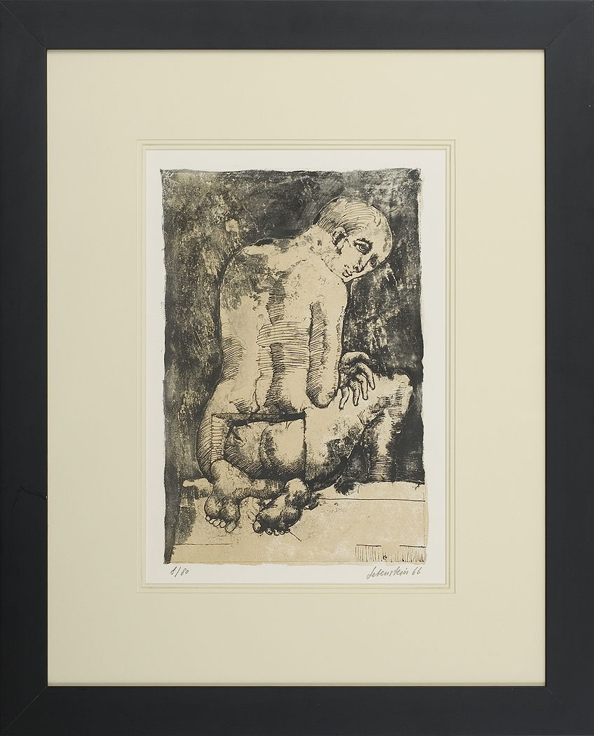 Jan Lebenstein (Brześć Litewski 1930 - Kraków 1999) w latach 1948-1954 studiował malarstwo w ASP w Warszawie pod kierunkiem prof. Eugeniusza Eibischa i Artura Nachta-Samborskiego. W 1955 wziął udział w wystawie w warszawskim Arsenale. Zaprzyjaźniony w czasie studiów z Mironem Białoszewskim, swą pierwszą wystawę indywidualną pokazał w 1956 w Teatrze na Tarczyńskiej. W 1959 zdobył Grand Prix de la Ville de Paris na I Biennale Młodych w Paryżu i w tym roku przeniósł się na stałe do Paryża. Po seriach "figur kreślonych" (na papierze milimetrowym) i "figur hieratycznych" z lat 1955-1958 maluje cykl "figur osiowych" (1958-1962), które wystawia w Paryżu i USA. Równolegle w 1960 zaczyna rysowane "karnety", rodzaj dziennika, który w przyszłości dostarczy motywów wykorzystanych w obrazach. W latach 1964-1965 maluje "Bestiarium", cykl fakturowych, archaizowanych stworów przypominających prehistoryczne wykopaliska. Bezpośrednio po nich wprowadza do swych obrazów postaci ludzkie i fantastyczne, odgrywające sceny ni to mitologiczne, ni to ze snu, często przesycone erotyką. W 1970 projektuje witraże dla Centre du Dialogue w Paryżu. W W 1971 otrzymuje obywatelstwo francuskie 1974 powstają gwasze inspirowane Folwarkiem zwierzęcym George'a Orwella. W latach 1976-1989 tworzy wyłącznie w technice gwaszu i pastelu, podejmując tematykę mitologiczną i zaczerpniętą z Biblii: cykle ilustracji do Księgi Hioba (wyd. 1979) i do Apokalipsy (wyd. 1986) w nowych przekładach Czesława Miłosza. W 1989 powraca do malarstwa olejnego (cykl "Pergamon"). Artysta otrzymał m. in. nagrodę Fundacji im. Alfreda Jurzykowskiego w 1976, Nagrodę Muzeum Archidiecezji Warszawskiej w 1985, Nagrodę im. Jana Cybisa w 1987.