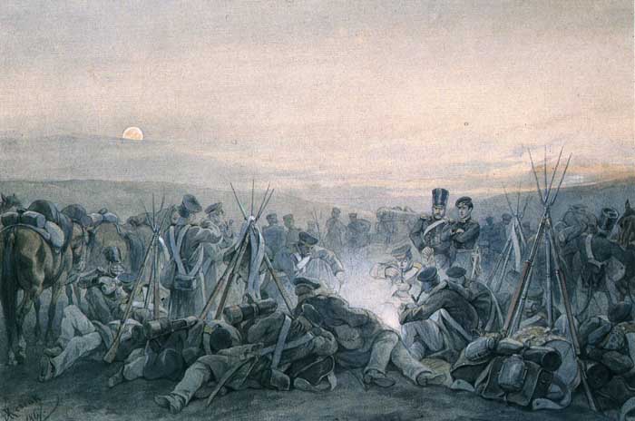 Juliusz Kossak (Wiśnicz 1824 - Kraków 1899) - malarz i ilustrator - był jednym z najpopularniejszych artystów polskich 2. połowy XIX wieku. Naukę rysunku i malarstwa rozpoczął we lwowskiej pracowni Jana Maszkowskiego; później wiele rysował z natury odwiedzając majątki szlacheckie na Ukrainie, Podolu i Wołyniu. W roku 1852 był w Wiedniu, na Węgrzech i w Petersburgu, a następnie zamieszkał na stałe w Warszawie. Lata 1856-1860 spędził w Paryżu, gdzie przyjaźnił się z Horacem Vernetem. Powróciwszy do Warszawy w latach 1862-1868 był kierownikiem artystycznym „Tygodnika Ilustrowanego”. W roku 1869 przeniósł się na stałe do Krakowa, skąd wyjeżdżał jeszcze do Monachium, by malować w atelier batalisty Franza Adama. Kossak był przede wszystkim znakomitym akwarelistą; rzadziej posługiwał się techniką olejną. Malował obrazy historyczne i batalistyczne, sceny rodzajowe ilustrujące życie i tradycje dworu szlacheckiego oraz obyczaje polskiego ludu. Ale prawdziwymi bohaterami jego obrazów były konie, których ruch, temperament, charakter i indywidualność potrafił po mistrzowsku przedstawić. Był także autorem wielu ilustracji do czasopism i książek, trafiającym bezbłędnie tak w klimat utworów literackich, jak i w tęsknoty i potrzeby odbiorców - czytelników Pieśni o ziemi naszej Wincentego Pola, Trylogii Henryka Sienkiewicza, Pana Tadeusza i poematów Adama Mickiewicza.