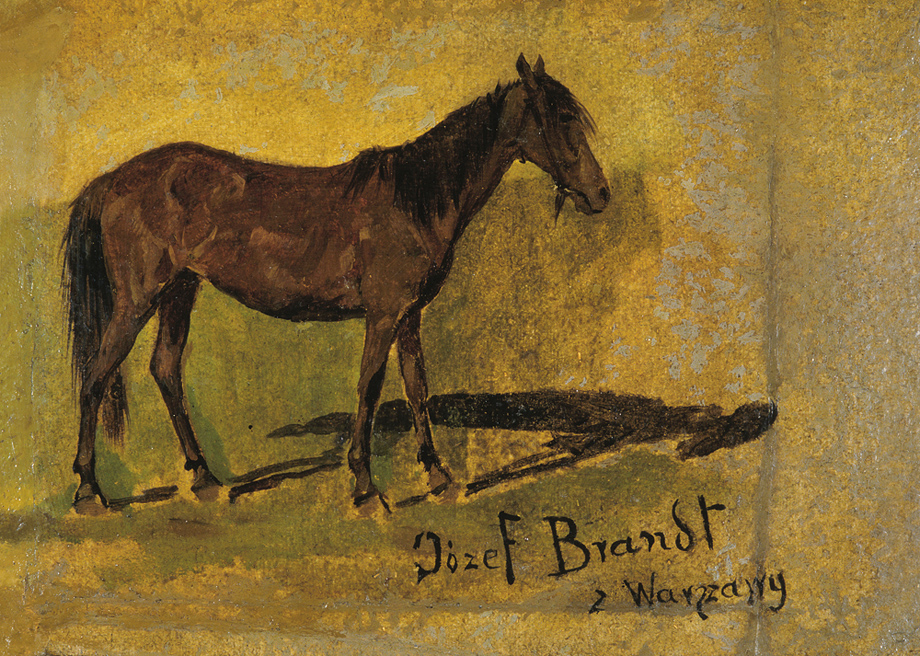 Józef Brandt (Szczebrzeszyn 1841 - Radom 1915) był jednym z najwybitniejszym polskich malarzy batalistów. Naukę malarstwa rozpoczął w Warszawie pod okiem Juliusza Kossaka. W latach 1858-1860 był w Paryżu, gdzie podjął studia inżynierskie. Niebawem zarzucił je jednak na rzecz malarstwa i kształcił się w pracowni Leona Cognieta. Po powrocie do kraju, w 1861 debiutował na wystawie w warszawskim TZSP. Od 1863 kontynuował studia w monachijskiej ASP u Franza Adama. W 1870 otworzył w Monachium własną pracownie i niebawem stał się przywódcą, „generałem” tamtejszej polskiej kolonii artystycznej i nauczycielem wielu malarzy. Po 1877 miesiące letnie spędzał w Orońsku, zapraszając na plenery grono swych uczniów. Został honorowym profesorem Akademii w Monachium (1878), członkiem Akademii w Berlinie (1877) i Pradze (1900). Odznaczony wysokimi orderami, wyróżniany medalami i nagrodami na międzynarodowych wystawach, cieszył się prawdziwie europejską sławą. Mieszkając i tworząc poza krajem zawsze wyraźnie podkreślał swoją polskość; dając jej wyraz choćby poprzez podpisywanie obrazów Józef Brandt z Warszawy. Malował bitwy, potyczki, podjazdy – epizody z historii polskich wojen kresowych i wojen szwedzkich XVII wieku, a także sceny rodzajowe – jeźdźców, polowania, jarmarki. Jego barwne, pełne ruchu i perfekcyjne warsztatowo obrazy podziwiano powszechnie, jako najlepszy przykład wysoko wówczas cenionej „szkoły polskiej”. Ale podczas gdy niemiecki czy francuski widz dostrzegał w nich przede wszystkim egzotykę i barwy Orientu, dla Polaków były to płótna „prawdziwe, naturalne, swojskie jak fragmenty z pamiętników Paska albo Rzewuskiego, przetransponowane na barwy i linie”. |