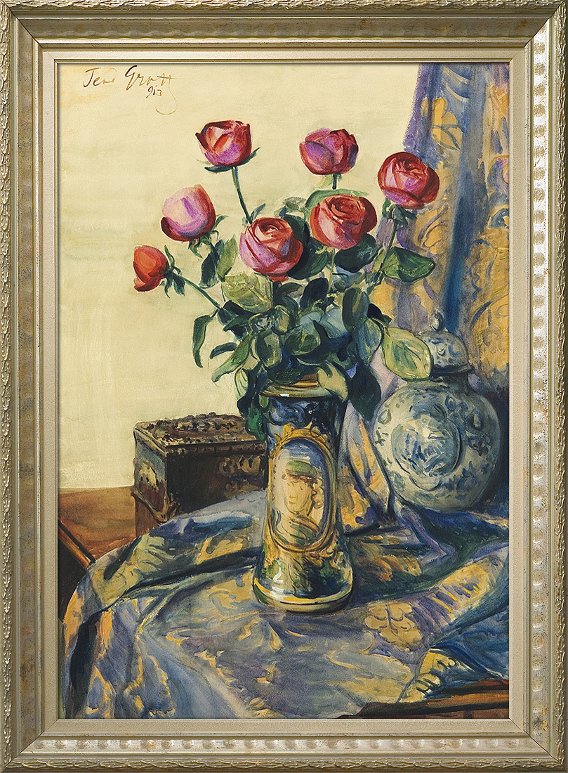 Teodor Grott (Częstochowa 1884 - Kraków 1972) - w latach 1903-1909 studiował w krakowskiej Akademii Sztuk Pięknych początkowo pod kierunkiem Floriana Cynka, później u Leona Wyczółkowskiego. W czasie studiów kilkakrotnie otrzymał medale za prace szkolne. Następnie kształcił się jeszcze w Paryżu, skąd wyjeżdżał do Brukseli i Londynu i podróżował do Włoch. Stale mieszkał w Krakowie, gdzie – począwszy od roku 1910 – wiele wystawiał w Towarzystwie Przyjaciół Sztuk Pięknych. Z czasem został członkiem honorowym Towarzystwa; od 1949 kierownikiem biura i organizatorem wystaw. Od roku 1912 należał także do Towarzystwa Artystów Polskich Sztuka. Malował pejzaże (m.in. tatrzańskie, z Ukrainy, Włoch, Francji), starą architekturę, kwiaty i martwe natury, portrety, akty. Najchętniej posługiwał się doskonale opanowaną techniką akwareli, ale malował także olejno. Zajmował się rzemiosłem artystycznym; wraz z żoną założył i prowadził w Krakowie wytwórnię kilimów.