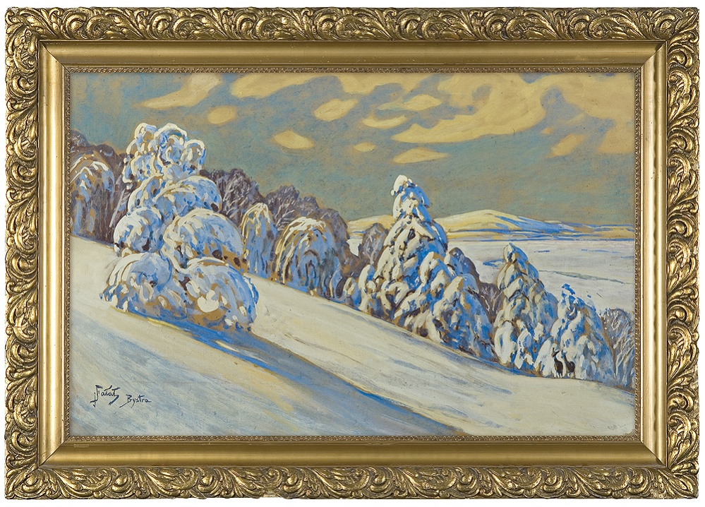 Julian Fałat (Tuligłowy [okręg lwowski] 1853 - Bystra k. Bielska 1929) - malarz i pedagog - jeden z najwybitniejszych artystów polskich okresu przełomu XIX i XX wieku, członek polskich i europejskich stowarzyszeń twórczych oraz Królewskiej Akademii Sztuk Pięknych w Berlinie, wielokrotnie odznaczany medalami na wystawach międzynarodowych. Studiował malarstwo u Władysława Łuszczkiewicza i Leona Dembowskiego w Szkole Sztuk Pięknych w Krakowie (1868-71 i 1881) i w Akademii Sztuk Pięknych w Monachium u Alexandra Strähubera i Johana Leonhardta Raaba (1877-80). Po studiach spędził kilka miesięcy w Rzymie, w 1884 był w Paryżu i w Hiszpanii, a w 1885 odbył podróż morską dookoła świata. W 1886 podczas polowania u ks. Radziwiłłów w Nieświeżu poznał późniejszego cesarza Niemiec Wilhelma II - dla którego następnie w latach 1886-95 pracował w Berlinie jako malarz nadworny. W latach 1894-96 współpracował z Wojciechem Kossakiem przy panoramie Berezyna. W 1895 został powołany na stanowisko dyrektora Szkoły Sztuk Pięknych w Krakowie, w której gruntownie zreformował system nauczania, przekształcając tę uczelnię w nowoczesną Akademię Sztuk Pięknych (r.1900). Do roku 1910 był rektorem Akademii; po przejściu na emeryturę osiadł w miejscowości Bystra k. Bielska. Znakomity akwarelista, malował także olejno. We wcześniejszym okresie tworzył w konwencji realistycznej, z czasem rozjaśnił i wzbogacił paletę, a w akwarelach wprowadzał rozlewną plamę barwną. Zasłynął jako malarz scen myśliwskich rozgrywających się najczęściej w zimowej scenerii; malował też pejzaże, wiejskie sceny rodzajowe, portrety, widoki miejskie.