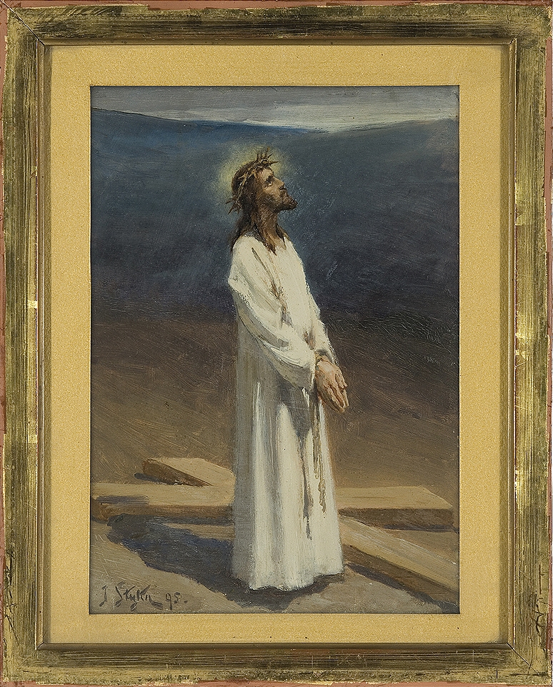 Jan Styka (Lwów 1858 - Rzym 1925) - popularny malarz scen historycznych i batalistycznych, autor obrazów alegorycznych i religijnych, portrecista, ojciec malarzy Tadeusza i Adama Styków. Studiował w Akademii Sztuk Pięknych w Wiedniu, następnie w Rzymie, a w latach 1882-1885 u Jana Matejki w Szkole Sztuk Pięknych w Krakowie. Po studiach spędził kilka lat w Paryżu, później mieszkał we Lwowie. W roku 1895 podróżował do Palestyny. Po 1900 stale mieszkał w Paryżu, skąd wyjeżdżał do Stanów Zjednoczonych, Włoch i Grecji. Uczestnik wielu wystaw, m.in. paryskich Salonów czy Wystawy Światowej w St. Louis (1904), cieszył się znaczną popularnością, a nawet sławą. Był członkiem Akademii Św. Łukasza w Rzymie. Był również pomysłodawcą i współtwórcą sławnych panoram - eksponowanej dziś stale we Wrocławiu Panoramy bitwy pod Racławicami (lata 1892-1894; wraz W. Kossakiem i innymi), Golgoty (1896; obecnie w Los Angeles), Panoramy Siedmiogrodzkiej (1897; pocięta na części, zachowały się tylko fragmenty), i Męczeństwa Chrześcijan w cyrku Nerona (1899; płótno zaginione podczas pierwszej wojny światowej). Zajmował się ilustratorstwem, m.in. przygotował ilustracje do luksusowego wydania Quo vadis? Sienkiewicza.