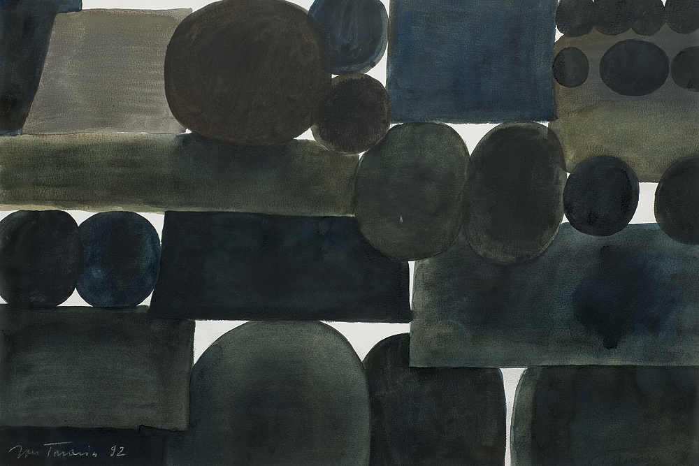 Jan Tarasin (Kalisz 11 IX 1926 - Warszawa 8 VIII 2009) studiował malarstwo w ASP w Krakowie pod kierunkiem prof. Zbigniewa Pronaszki (1946-1951). Jeszcze jako student zadebiutował na I Wystawie Sztuki Nowoczesnej w Krakowie w 1948/49. W połowie lat 50. stworzył cykle litografii: „Nowa Huta i jej mieszkańcy“, 1954, „Dom“, 1955). W pierwszym przeciwstawił się oficjalnemu optymizmowi, w drugim, operując symboliką martwej natury, zawarł treści egzystencjalne i odnoszące do niedawnego dramatu wojny. Po 1956 zaczął malować obrazy niefiguratywne. Układy wyodrębnionych elementów (określanych jako „przedmioty“) umieszczane były przez artystę na płaszczyźnie (cykl „Wnętrze“, 1957) ), lub w aluzyjnej przestrzeni (cykle „Uczta“, 1957, „Brzeg“, 1962-1964, „Przedmioty policzone“, od 1968, „Antykwariat“, 1968). Zasada ta utrzymuje się w jego malarstwie w następnych latach, różnice między okresami twórczości dotyczą sposobu opracowania „przedmiotów“ i ich usytuowania w przestrzeni obrazu lub wobec tła. Od lat 70. „przedmioty“ zmieniają się w graficzne, zwykle czarne znaki na jasnych tłach (cykl „Kolekcja“, od 1971). Tła z kolei bywają iluzyjnie przestrzenne, zróżnicowane walorowo, miękkie. W latach 90. artysta wrócił do kolorystycznego, bardziej malarskiego rozwiązywania zarówno znaków, jak i teł, często ciemnych lub przenikających się z „przedmiotami“ (cykl „Wylęgarnia przedmiotów“, 1992). Tarasin od 1962 jest członkiem „Grupy Krakowskiej“. W 1963-67 uczył na Wydziale Architektury Wnętrz krakowskiej ASP. W 1967 przeniósł się do Warszawy, w 1974 podjął pracę pedagogiczną na Wydziale Malarstwa ASP w Warszawie. W 1987-90 był rektorem tej uczelni. W 1976 otrzymał Nagrodę Krytyki Artystycznej im. Cypriana Kamila Norwida, w 1984 Nagrodę im. Jana Cybisa.; Nagroda na MB Sztuki w San Marino 1965. Równolegle z malarstwem zajmował się rysunkiem i grafiką - do lat 60. litografią, od 1974 serigrafią. W 1974-1981 wydał 8 autorskich „Zeszytów“ z serigrafiami i własnymi tekstami. W 1995 w Galerii Zachęta odbyła się wystawa artysty, której towarzyszył monograficzny katalog.