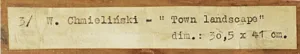 Władysław Chmieliński (Warszawa 1911 - Warszawa 1979) był malarzem związanym z Warszawą, gdzie stale mieszkał i pracował. W latach 1926-1931 studiował w warszawskiej Miejskiej Szkole Sztuk Zdobniczych i Malarstwa (dawna Klasa Rysunkowa). Wiodącym tematem jego obrazów były widoki miejskie, malowane olejno i akwarelą. W latach 1935-1938 stworzył cykl akwarel przedstawiających obiekty polskiej architektury; wśród nich, widoki Sandomierza, Krakowa, Kazimierza nad Wisłą, a także wnętrza zabytkowych kościołów czy pałaców, m.in. Zamku Królewskiego w Warszawie i Pałacu w Wilanowie. Malował także pejzaże i wiejskie sceny rodzajowe – kuligi, sanny, zaprzęgi, wesela, konie na tle krajobrazu. W latach 1967-1969 wyjeżdżał na dłuższe pobyty do Danii. W latach 1936-1939 artysta używał także pseudonimu „Władysław Stachowicz”.