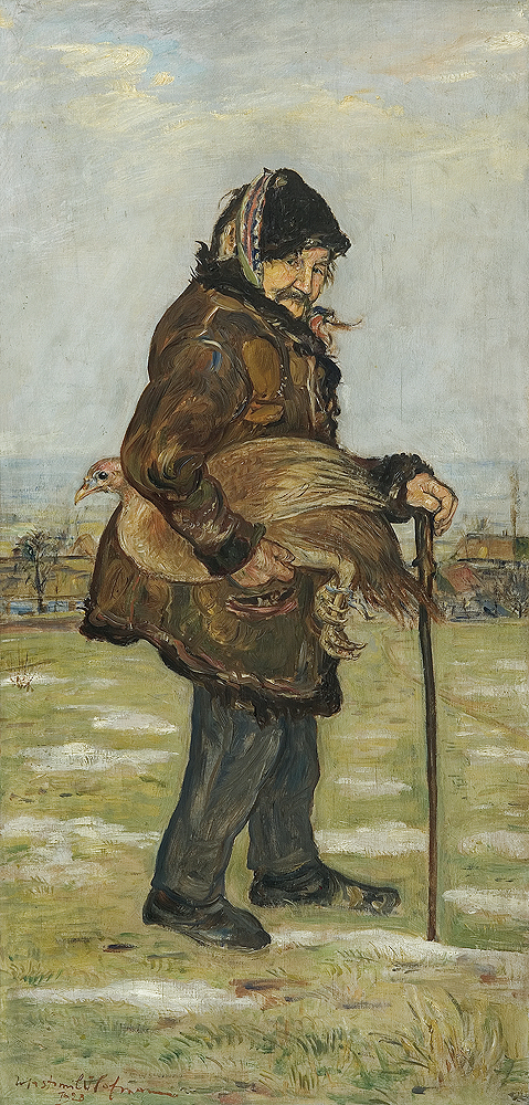 Wlastimil Hofman / Vlastimil Hofmann (Praga 1881 - Szklarska Poręba 1970) studiował w krakowskiej Szkole Sztuk Pięknych - początkowo pod kierunkiem Floriana Cynka, później także u Jana Stanisławskiego, Leona Wyczółkowskiego i Jacka Malczewskiego. W latach 1899-1902 uczył się jeszcze u Jeana Léona Gérôme’a w paryskiej École des Beaux-Arts. W czasie I wojny światowej przebywał w Pradze i w Paryżu; od 1920 stale mieszkał w Krakowie. Dużo wystawiał; należał do wielu stowarzyszeń twórczych - był współzałożycielem „Grupy Pięciu” (1905) i „Grupy Zero” (1908), członkiem Związku Artystów Czeskich „Manes”, a od 1911 członkiem Tow. Artystów Polskich „Sztuka”. W czasie II wojny światowej poprzez ZSRR i Turcję przedostał się do Jerozolimy, skąd w roku 1946 wrócił do Krakowa. Od roku 1947 stale mieszkał w Szklarskiej Porębie. Hofman malował przede wszystkim fantastyczno-symboliczne kompozycje o motywach ludowych oraz sceny rodzajowe, portrety i pejzaże. Jego obrazy mimo bliskich analogii i powiązań ze sztuką Malczewskiego odznaczają się zawsze indywidualnym charakterem, stylem i nastrojem.