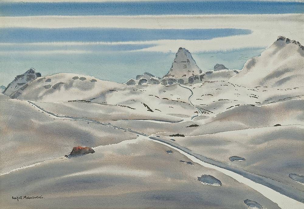 Rafał Malczewski (Kraków 1892 - Montreal 1965) studiował w Wiedniu agronomię, filozofię i architekturę; uczęszczał także do tamtejszej Akademii Sztuk Pięknych, ale edukację artystyczną zawdzięczał przede wszystkim ojcu, Jackowi Malczewskiemu. W latach 1917-1939 stale mieszkał w Zakopanem; był zamiłowanym taternikiem. W roku 1930 wyjechał na półroczny pobyt do Francji. W grudniu 1939 przez Słowację i Węgry przedarł się do Francji, skąd następnie wyjechał do Brazylii a później Stanów Zjednoczonych. W 1942 dotarł do Montrealu, gdzie pozostał na stałe. Począwszy od 1919 r. wiele wystawiał; od 1934 r. także jako członek ugrupowania „Rytm”. Malował przede wszystkim krajobrazy – z Tatr, Podhala, widoki z małych miasteczek i z fabrycznego Śląska, później także z Brazylii i Kanady. W swoich obrazach – świadomie prymityzowanych, utrzymanych często w poetyckim i bajkowym nastroju – bliski jest sztuce naiwnego realizmu. Malczewski był również literatem, autorem artykułów o sztuce, felietonów, esejów oraz wspomnień tatrzańskich i zakopiańskich, m.in. „Narkotyk gór”, „Góry wołają” czy „Pępek świata”, książką napisaną już w Kanadzie.