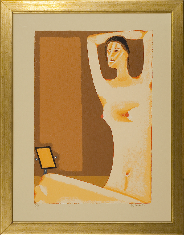 Jerzy Nowosielski (Kraków 1923 - Kraków 2011) w 1940 zaczął studia w Kunstgewerbeschule w Krakowie. W 1942 przebywał przez niecały rok w Ławrze św. Jana Chrzciciela pod Lwowem. Studiował tam sztukę malowania i historię ikon. Po powrocie do Krakowa w 1943 nawiązał ponowne kontakty z kręgiem przyszłej Grupy Krakowskiej. Po wojnie kontynuował studia w ASP w Krakowie pod kierunkiem prof. Eugeniusza Eibischa (1945-1947). Na I Wystawie Sztuki Nowoczesnej w Krakowie w 1948/49 pokazał obrazy utrzymane w nurcie abstrakcji geometrycznej. W latach socrealizmu nie wystawiał, zajmując się w tym czasie scenografią oraz malowaniem cerkwi i kościołów. W 1955 w Łodzi zaprezentował swą pierwszą wystawę indywidualną, w 1956 wziął udział w XXVIII Biennale w Wenecji. W latach 1957-1962 był pedagogiem w Państwowej Wyższej Szkole Sztuk Plastycznych w Łodzi, następnie w Akademii krakowskiej, gdzie wykładał na Wydziale Malarstwa do przejścia na emeryturę w 1993. W drugiej połowie lat 50. osiągnął charakterystyczny styl aktów, pejzaży i scen figuralnych we wnętrzach, który zawdzięczał swej fascynacji ikoną i doświadczeniom z malarstwem sakralnym. W 1976 podjął na nowo realizacje monumentalne, wykonując m.in. malowidła ścienne, stacje Drogi Krzyżowej i projekty witraży w kościele Opatrzności Bożej w Wesołej pod Warszawą (1976-1979). Artysta powszechnie uznawany był za autorytet w dziedzinie sztuki zakorzenionej w wartościach duchowych.