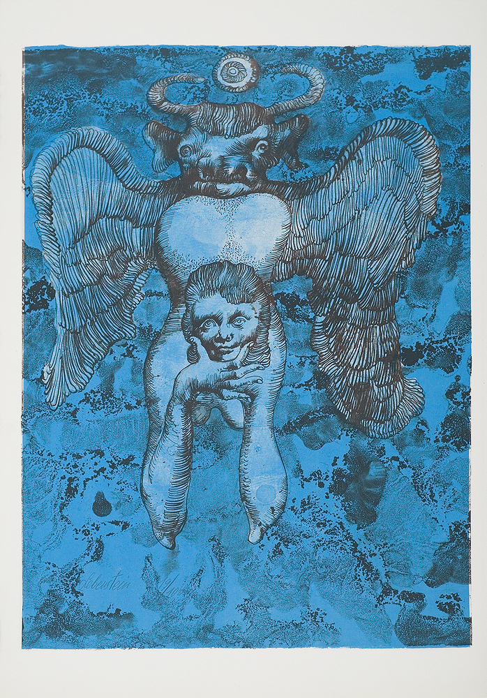 Jan Lebenstein (Brześć Litewski 1930 - Kraków 1999) w latach 1948-1954 studiował malarstwo w ASP w Warszawie pod kierunkiem prof. Eugeniusza Eibischa i Artura Nachta-Samborskiego. W 1955 wziął udział w wystawie w warszawskim Arsenale. Zaprzyjaźniony w czasie studiów z Mironem Białoszewskim, swą pierwszą wystawę indywidualną pokazał w 1956 w Teatrze na Tarczyńskiej. W 1959 zdobył Grand Prix de la Ville de Paris na I Biennale Młodych w Paryżu i w tym roku przeniósł się na stałe do Paryża. Po seriach "figur kreślonych" (na papierze milimetrowym) i "figur hieratycznych" z lat 1955-1958 maluje cykl "figur osiowych" (1958-1962), które wystawia w Paryżu i USA. Równolegle w 1960 zaczyna rysowane "karnety", rodzaj dziennika, który w przyszłości dostarczy motywów wykorzystanych w obrazach. W latach 1964-1965 maluje "Bestiarium", cykl fakturowych, archaizowanych stworów przypominających prehistoryczne wykopaliska. Bezpośrednio po nich wprowadza do swych obrazów postaci ludzkie i fantastyczne, odgrywające sceny ni to mitologiczne, ni to ze snu, często przesycone erotyką. W 1970 projektuje witraże dla Centre du Dialogue w Paryżu. W W 1971 otrzymuje obywatelstwo francuskie 1974 powstają gwasze inspirowane Folwarkiem zwierzęcym George'a Orwella. W latach 1976-1989 tworzy wyłącznie w technice gwaszu i pastelu, podejmując tematykę mitologiczną i zaczerpniętą z Biblii: cykle ilustracji do Księgi Hioba (wyd. 1979) i do Apokalipsy (wyd. 1986) w nowych przekładach Czesława Miłosza. W 1989 powraca do malarstwa olejnego (cykl "Pergamon"). Artysta otrzymał m. in. nagrodę Fundacji im. Alfreda Jurzykowskiego w 1976, Nagrodę Muzeum Archidiecezji Warszawskiej w 1985, Nagrodę im. Jana Cybisa w 1987.