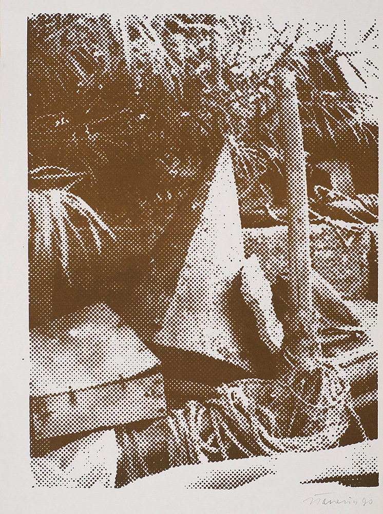 Jan Tarasin (Kalisz 11 IX 1926 - Warszawa 8 VIII 2009) studiował malarstwo w ASP w Krakowie pod kierunkiem prof. Zbigniewa Pronaszki (1946-1951). Jeszcze jako student zadebiutował na I Wystawie Sztuki Nowoczesnej w Krakowie w 1948/49. W połowie lat 50. stworzył cykle litografii: „Nowa Huta i jej mieszkańcy“, 1954, „Dom“, 1955). W pierwszym przeciwstawił się oficjalnemu optymizmowi, w drugim, operując symboliką martwej natury, zawarł treści egzystencjalne i odnoszące do niedawnego dramatu wojny. Po 1956 zaczął malować obrazy niefiguratywne. Układy wyodrębnionych elementów (określanych jako „przedmioty“) umieszczane były przez artystę na płaszczyźnie (cykl „Wnętrze“, 1957) ), lub w aluzyjnej przestrzeni (cykle „Uczta“, 1957, „Brzeg“, 1962-1964, „Przedmioty policzone“, od 1968, „Antykwariat“, 1968). Zasada ta utrzymuje się w jego malarstwie w następnych latach, różnice między okresami twórczości dotyczą sposobu opracowania „przedmiotów“ i ich usytuowania w przestrzeni obrazu lub wobec tła. Od lat 70. „przedmioty“ zmieniają się w graficzne, zwykle czarne znaki na jasnych tłach (cykl „Kolekcja“, od 1971). Tła z kolei bywają iluzyjnie przestrzenne, zróżnicowane walorowo, miękkie. W latach 90. artysta wrócił do kolorystycznego, bardziej malarskiego rozwiązywania zarówno znaków, jak i teł, często ciemnych lub przenikających się z „przedmiotami“ (cykl „Wylęgarnia przedmiotów“, 1992). Tarasin od 1962 jest członkiem „Grupy Krakowskiej“. W 1963-67 uczył na Wydziale Architektury Wnętrz krakowskiej ASP. W 1967 przeniósł się do Warszawy, w 1974 podjął pracę pedagogiczną na Wydziale Malarstwa ASP w Warszawie. W 1987-90 był rektorem tej uczelni. W 1976 otrzymał Nagrodę Krytyki Artystycznej im. Cypriana Kamila Norwida, w 1984 Nagrodę im. Jana Cybisa.; Nagroda na MB Sztuki w San Marino 1965. Równolegle z malarstwem zajmował się rysunkiem i grafiką - do lat 60. litografią, od 1974 serigrafią. W 1974-1981 wydał 8 autorskich „Zeszytów“ z serigrafiami i własnymi tekstami. W 1995 w Galerii Zachęta odbyła się wystawa artysty, której towarzyszył monograficzny katalog.