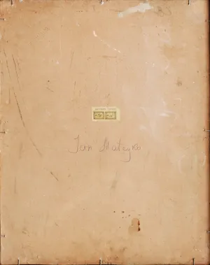 Na odwrocie - odwrotnie w stosunku do kompozycji malarskiej - napis ołówkiem: Jan Mateyko.
