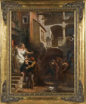 Jan Matejko (Kraków 1838 - Kraków 1893) - najwybitniejszy polski malarz historyczny; studia malarskie rozpoczął pod kierunkiem W. Łuszczkiewicza i W. K. Stattlera w krakowskiej Szkole Sztuk Pięknych (lata 1852-1858). Następnie uczył się w Akademii monachijskiej u H. Anschütza (1859) i przez dwa miesiące w Akademii wiedeńskiej u C. Rubena (1860). Po studiach mieszkał i pracował w Krakowie. W 1873 objął stanowisko dyrektora tamtejszej Szkoły Sztuk Pięknych, pełniąc tę funkcję aż do śmierci. Dużo podróżował - wielokrotnie wyjeżdżał do Paryża (w latach 1865-1880), Wiednia (1866-1888), w 1872 był w Konstantynopolu, a rok później w Pradze i Budapeszcie, odwiedzał również Włochy (1878-1879 i 1883). Był członkiem licznych akademii i towarzystw artystycznych m.in. Académie des Beaux-Arts (1873) i Instytutu Francuskiego (1874) w Paryżu, berlińskiej Akademii Sztuki (1874), Akademii Rafaelowskiej w Urbino (1878) i Künstlersgenossenschaft w Wiedniu (1888). W 1864 został członkiem Towarzystwa Naukowego w Krakowie, w 1887 otrzymał doktorat filozofii honoris causa Uniwersytetu Jagiellońskiego. Był twórcą wielkich i znanych płócien, m.in. Kazania Skargi, Rejtana, Unii Lubelskiej, Batorego pod Pskowem, Bitwy pod Grunwaldem, Hołdu Pruskiego czy Kościuszki pod Racławicami. Malował także portrety i - rzadziej - sceny religijne czy rodzajowe. Ważną rolę w jego twórczości odgrywał rysunek - artysta opracował, m.in. album Ubiory w Polsce od 1200 do 1795 oraz rysunkowy cykl Poczet królów i książąt polskich. W latach 1889-1891, wraz z zespołem uczniów, pracował nad polichromią kościoła Mariackiego w Krakowie. W rodzinnym domu malarza, przy ulicy Floriańskiej w Krakowie od 1898 mieści się poświęcone mu muzeum - Dom Matejki (Oddział MNK).
