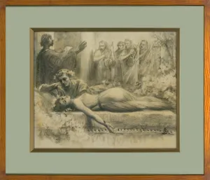 Jan Styka (Lwów 1858 - Rzym 1925) - popularny malarz scen historycznych i batalistycznych, autor obrazów alegorycznych i religijnych, portrecista, ojciec malarzy Tadeusza i Adama Styków. Studiował w Akademii Sztuk Pięknych w Wiedniu, następnie w Rzymie, a w latach 1882-1885 u Jana Matejki w Szkole Sztuk Pięknych w Krakowie. Po studiach spędził kilka lat w Paryżu, później mieszkał we Lwowie. W roku 1895 podróżował do Palestyny. Po 1900 stale mieszkał w Paryżu, skąd wyjeżdżał do Stanów Zjednoczonych, Włoch i Grecji. Uczestnik wielu wystaw, m.in. paryskich Salonów czy Wystawy Światowej w St. Louis (1904), cieszył się znaczną popularnością, a nawet sławą. Był członkiem Akademii Św. Łukasza w Rzymie. Był również pomysłodawcą i współtwórcą sławnych panoram - eksponowanej dziś stale we Wrocławiu Panoramy bitwy pod Racławicami (lata 1892-1894; wraz W. Kossakiem i innymi), Golgoty (1896; obecnie w Los Angeles), Panoramy Siedmiogrodzkiej (1897; pocięta na części, zachowały się tylko fragmenty), i Męczeństwa Chrześcijan w cyrku Nerona (1899; płótno zaginione podczas pierwszej wojny światowej). Zajmował się ilustratorstwem, m.in. przygotował ilustracje do luksusowego wydania Quo vadis? Sienkiewicza.