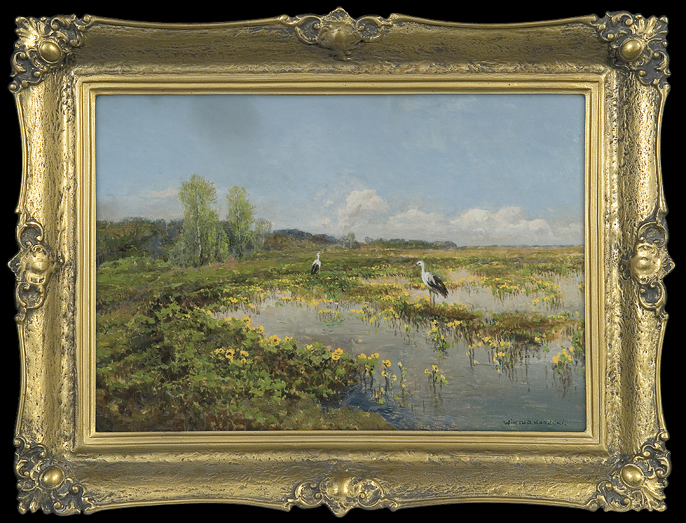 Wiktor Korecki (Kamieniec Podolski 1890 - Komorów k. Warszawy 1980) - malarz pejzażysta - gimnazjum ukończył w Kijowie, tam też studiował w Szkole Rysunkowej Aleksandra Muraszki. Po studiach wrócił do Kamieńca Podolskiego, skąd w roku 1921 wyjechał do Warszawy. Tu miał pracownię na rogu ulic Tamki i Cichej. Niestety zgromadzone tam obrazy spłonęły w czasie powstania 1944 roku. Po powstaniu artysta przebywał w obozie w Pruszkowie skąd trafił do obozu pracy w Lipsku. Do kraju powrócił w roku 1946 i zamieszkał w Komorowie pod Warszawą, a później w Milanówku. Jego nastrojowe krajobrazy emanujące spokojem i pogodą cieszyły się zawsze dużą popularnością. Korecki najczęściej malował pejzaże zimowe z motywem leśnej drogi i strumienia wijącego się wśród śniegów, a obok nich także wiosenne, letnie czy jesienne widoki z Mazowsza.