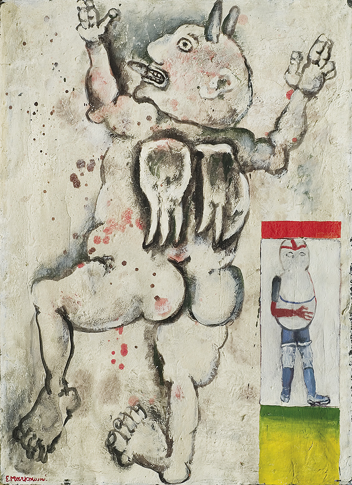 Eugeniusz Markowski (Warszawa 8 XI 1912 - Warszawa 24 II 2007) studiował w warszawskiej ASP, dyplom u prof. Tadeusza Pruszkowskiego uzyskał w 1939. Brał udział w kampanii wrześniowej i obronie Warszawy. W latach 1940-1950 przebywał we Włoszech, gdzie związał się z grupą Libera Associazione Arti Figurative i z Art Club w Rzymie. Zajmował się też projektowaniem scenografii dla rzymskiego Teatro delle Arti. Był dziennikarzem i dyplomatą we Włoszech i Kanadzie (1945-1955). Po powrocie do kraju był dyrektorem Biura Współpracy Kulturalnej z Zagranicą Ministerstwa Kultury i Sztuki (1960-1969), następnie wykładowcą i profesorem ASP w Warszawie (1969-1984). Współ-pracował jako scenograf z Operą Gdańską i teatrami warszawskimi. W 1963 reprezentował Polskę na Biennale w Sao Paulo, miał kilka wystaw indywidualnych. Jego ekspresyjny styl malowania, bezpośredniość i pewna rubaszność figuratywnych przedstawień walk i zmagań spowodowały, że w latach 80. uznano go za prekursora „nowodzikich".