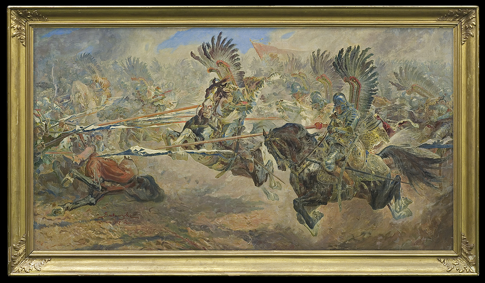 Stanisław Kaczor-Batowski (Lwów 1866 - Lwów 1946) - studia artystyczne rozpoczął w krakowskiej Szkole Sztuk Pięknych pod kierunkiem Władysława Łuszczkiewicza i Floriana Cynka. Później kształcił się w Akademii w Wiedniu, a w l. 1887-1889 także w Akademii w Monachium pod kierunkiem A.Liezen-Mayera. Podróżował do Włoch, Hiszpanii, Maroka i na Krym; był także w Stanach Zjednoczonych. Stale mieszkał we Lwowie, gdzie w latach 1903-1914 prowadził własną szkołę malarstwa. Był współzałożycielem lwowskiego Stowarzyszenia Artystów „Młoda Polska”. Znany jest przede wszystkim jako batalista, twórca takich płócien, jak Atak husarii pod Chocimiem (Muzeum Wojska Polskiego w Warszawie), Pułaski pod Savannach, Bitwa pod Zadwórzem(Muzeum Wojska Polskiego w Warszawie). Malował także pejzaże, portrety i obrazy religijne. Zajmował się także ilustratorstwem, m.in. wykonał cykle kartonów i ilustracji do utworów J. Słowackiego, powieści H. Sienkiewicza i E. Orzeszkowej. Projektował witraże (np. do katedry łacińskiej we Lwowie), zajmował się malarstwem ściennym, współpracując m.in. przy dekoracji lwowskiego teatru.