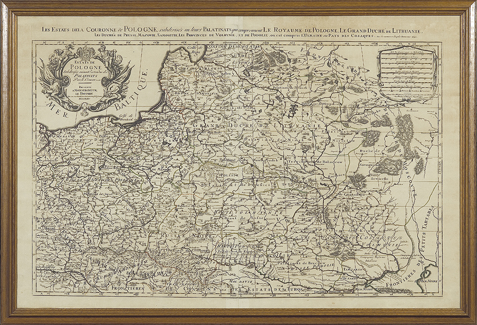 LES ETATS DELA COURONNE de POLOGNE, subdivisés en leurs PALATINATS. qui comprennent LE ROYAUME DE POLOGNE, LE GRAND DUCHÉ DE LITHUANIE, | LE DUCHÉS DE PRUSSE, MAZOVIE, SAMOGITIE, LES PROVINCES DE VOLHYNIE, ET DE PODOLIE, ou est compris L’UKRAINE ou pays des cosaques, sur les memoires Les plus Nouueaux 1692.