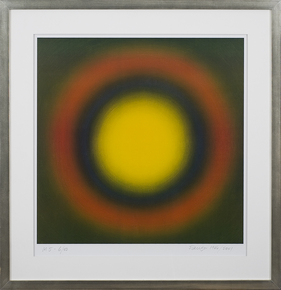 Wojciech Fangor (Warszawa 1922 - Warszawa 2015) uczył się malarstwa u Tadeusza Pruszkowskiego i Felicjana Szczęsnego-Kowarskiego (1940-44). W 1946 uzyskał dyplom w ASP w Warszawie. W 1954-62 był docentem na Wydziale Grafiki tej uczelni. Uczestniczył w oficjalnym życiu artystycznym okresu socrealizmu jako malarz i grafik-plakacista. W malarstwie niekiedy stosował przerysowania na granicy zamierzonej karykatury („Postaci“, 1950). W plakatach filmowych operował metaforą i syntetycznym znakiem malarskim w sposób odbiegający od doktryny socrealizmu („Silniejsi od nocy“, 1955), stając się współtwórcą tzw. polskiej szkoły plakatu. Współpracował też z architektami, m.in. ze Stanisławem Zamecznikiem, z którym stworzył w 1958 „Studium przestrzeni“, pierwsze polskie environment, które bazowało na jego obrazach optycznych. W 1961 wyjechał z Polski, początkowo do Wiednia, potem do Waszyngtonu (1962), Paryża (1962-1964), Berlina Zachodniego (1964-1965) i Anglii (1965-1966). W 1966 osiedlił się na stałe w Stanach Zjednoczonych, gdzie wykładał na Fairleigh Dickinson University w Madison (1966-1983) i na Wydziale Architektury Harvard University w Cambridge, Massachussets (1967-1968). W 1978 otrzymał nagrodę Fundacji Jurzykowskiego. W 1989 przeniósł się do Santa Fe w stanie Nowy Meksyk, a od lat 90. zamieszkał w Polsce.